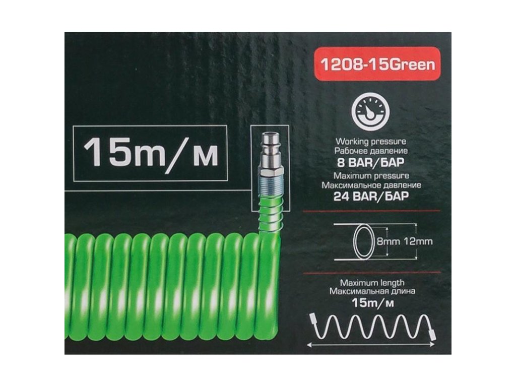 A ROCKFORCE 12×8 mm-es spirálos poliuretán tömlő, 15 m hosszú kiváló minőségű pneumatikus vezeték, amelyet intenzív használatra terveztek műhelyekben, ipari üzemekben és autószervizekben. Az kopásálló poliuretán (PU) anyagból készült, és réz gyorscsatlakozókkal rozsdamentes acélból van felszerelve, garantálja a hosszú élettartamot, a rugalmasságot, valamint a szoros és biztonságos csatlakozást bármely pneumatikus berendezéshez.