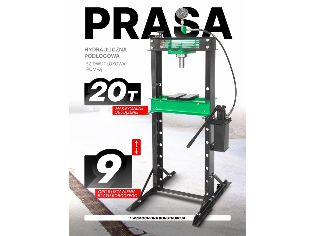Professzionális hidraulikus prés Rockforce 20 TON egy olyan eszköz, melyet a legigényesebb műhelyi feladatok érdekében terveztek. A kettős szivattyú a hengerek kinyújtásának szabályozásával, a precíz nyomásmérő és a masszív acél szerkezet garantálja a maximális ellenőrzést, teljesítményt és a munka biztonságát.