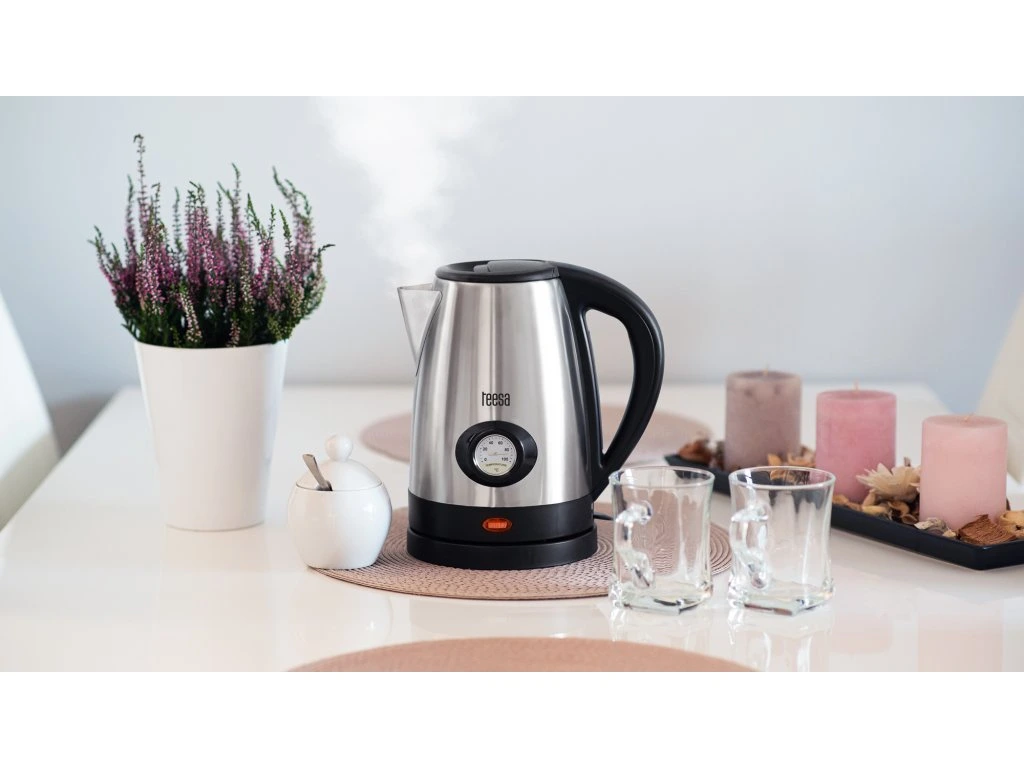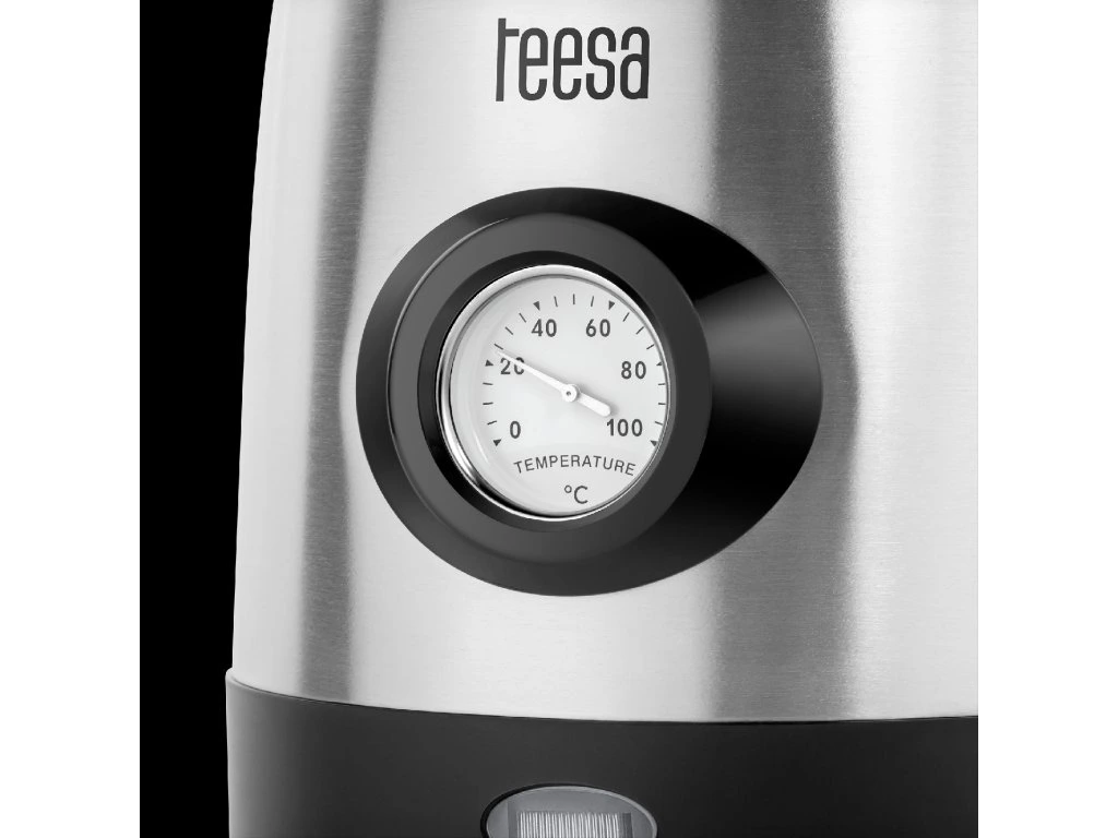 Ha azon gondolkodik, hogy melyik vízforralót válassza, érdemes megfontolni a Teesa TSA1513 vízforralót. A Teesa vízforraló víz hőmérséklet-jelzővel ideális lesz azok számára, akik szeretik feldobni az életüket ízletesen elkészített forró italokkal. A fémfedélen található hőmérő segítségével könnyen ellenőrizheti, hogy az aktuális vízhőmérséklet ideális-e például a zöld tea vagy a csokoládé elkészítéséhez. Másrészt a vízszintjelző segítségével gyorsan ellenőrizheti a vízforralóban lévő víz mennyiségét anélkül, hogy fel kellene nyitnia a fedelet.