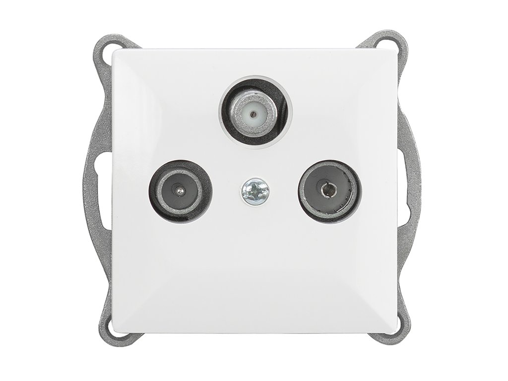 Moduláris sorozat szimmetrikus keretlemezes rendszerrel (1-, 2-, 3-, 4-, 5-modulos) lehetővé teszi a termék vízszintes és függőleges pozícióba történő szerelését. A modern gyorscsatlakozó mechanizmus (a vezetékeket közvetlenül a testbe történő nyomással kötik össze) biztosítja a vezetékek biztonságos és megbízható telepítését és eltávolítását. Az aljzatok hagyományos csavaros csatlakozásokkal vannak felszerelve. A kapcsok belső kialakítása biztosítja a 0,75 mm?-től 2,5 mm?-es vezetékek biztonságos csatlakoztatását. Erős és robusztus rögzítőlemezrács és kiváló minőségű, önvisszahúzó elemek teszik lehetővé a stabil és biztonságos telepítést a dobozban. Különleges rugózó elemek segítik a keret testbe történő illesztését.RTV/SAT műholdas aljzat, süllyesztett szerelésre tervezve. Lehetővé teszi rádió- és televízió vevő (digitális vagy analóg földi TV) és műholdvevő csatlakoztatását. Beltéri használatra alkalmas (IP20).