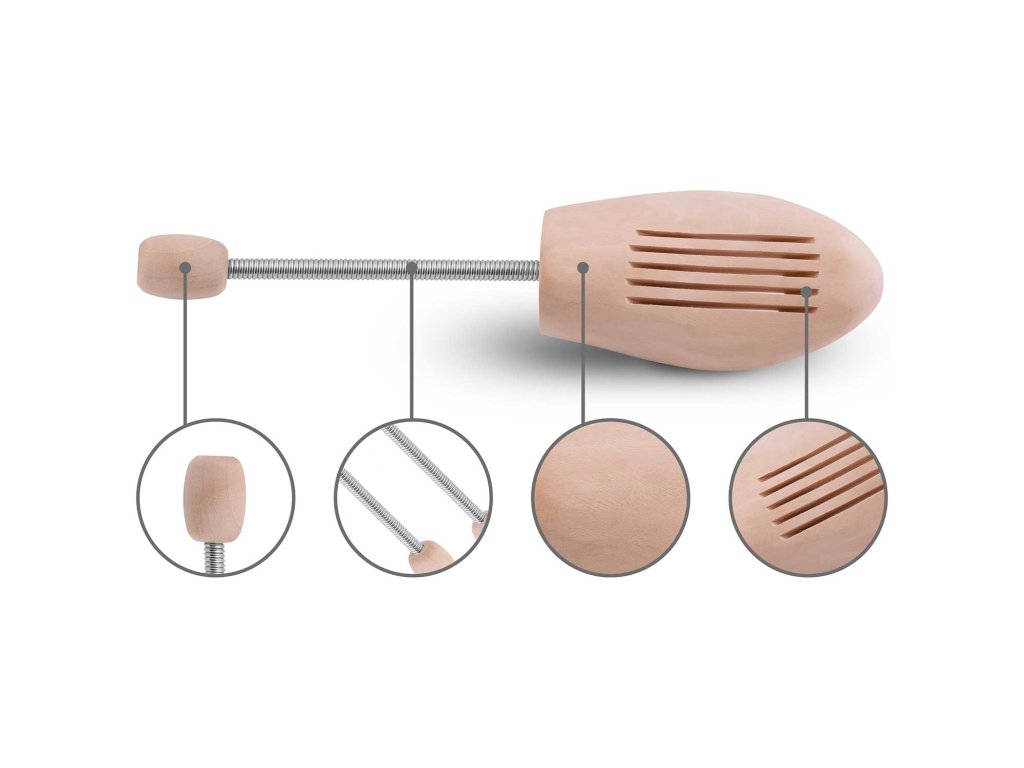 A fa használata miatt a bemutatott feszítő modell a legnagyobb népszerűségnek és bizalomnak örvend az elegáns cipő tulajdonosai körében. Ezt egyedülálló tulajdonságának köszönheti: nagyon hatékony nedvességfelszívódás.