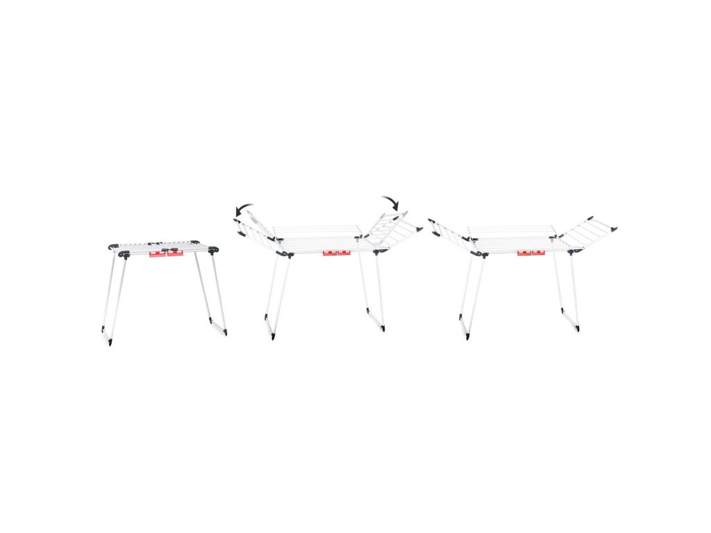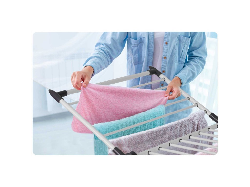 A sorok közötti kényelmes réseknek köszönhetően a víz gyorsan elpárolog, a szennyes pedig egyenletesen megszárad és hajtogatható lesz!
