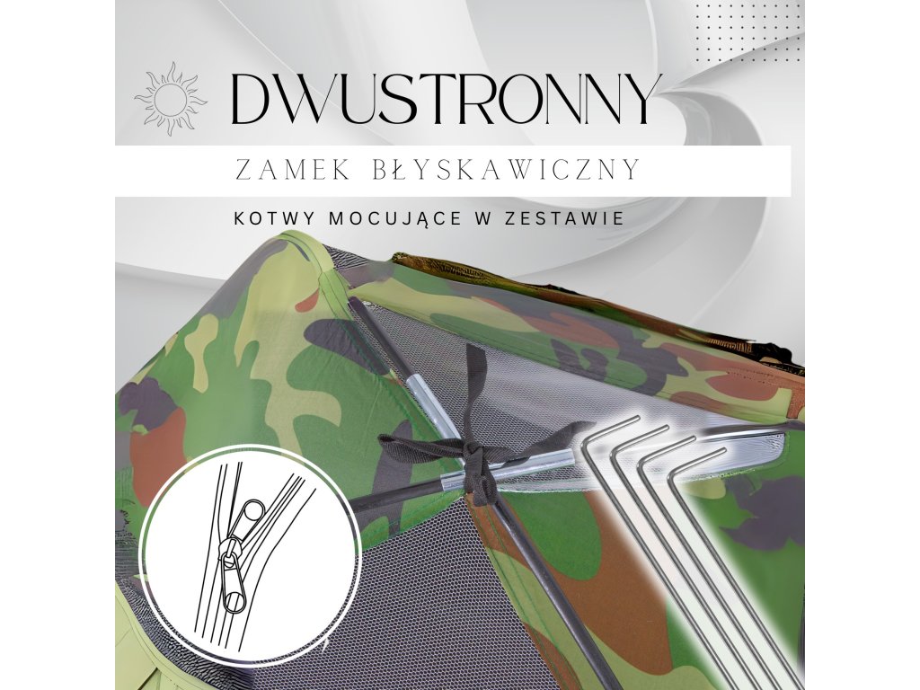 - Anyaga: 170T poliészter, vízálló, UV bevonattal ellátott