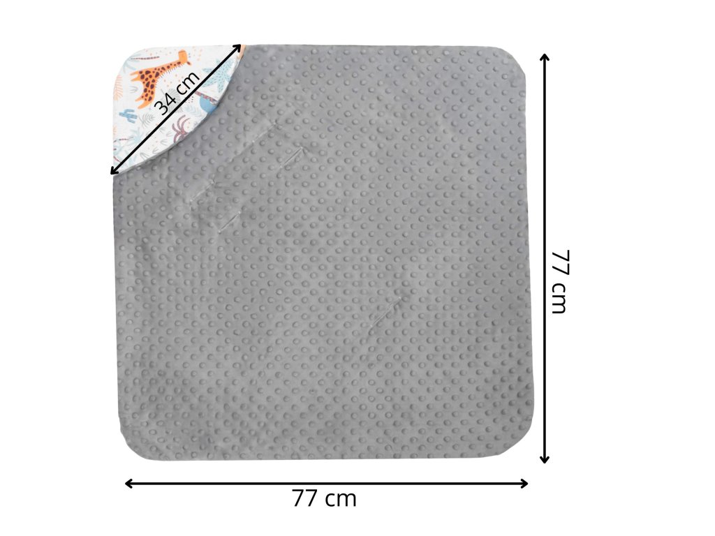 - Belső anyag: minky típusú szövet - bolyhos és puha, kiemelkedő, szürke színű