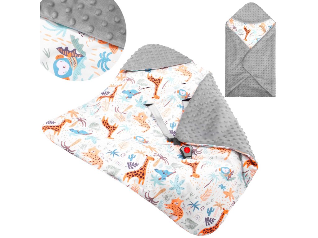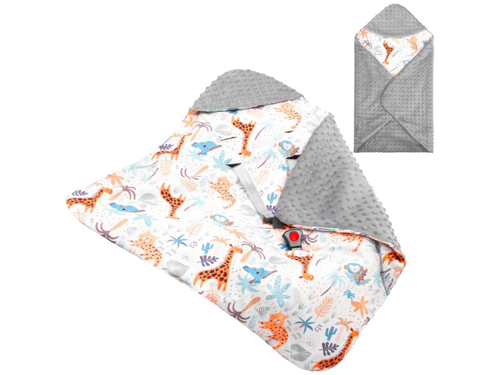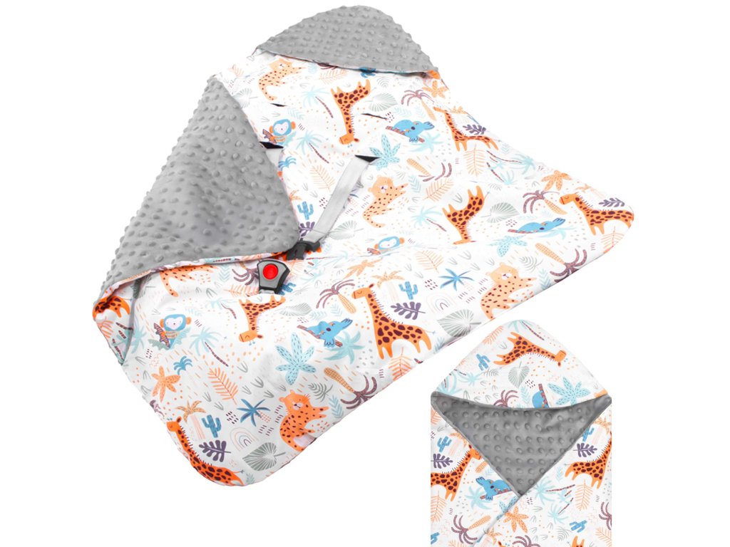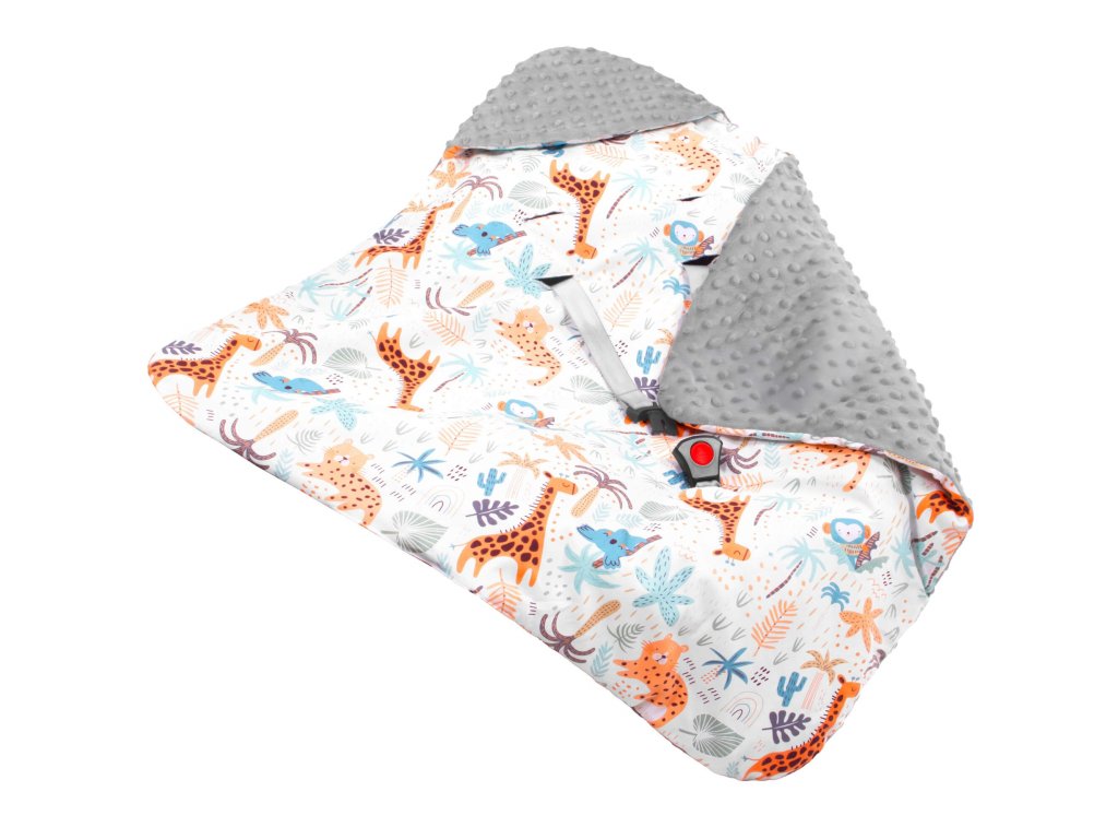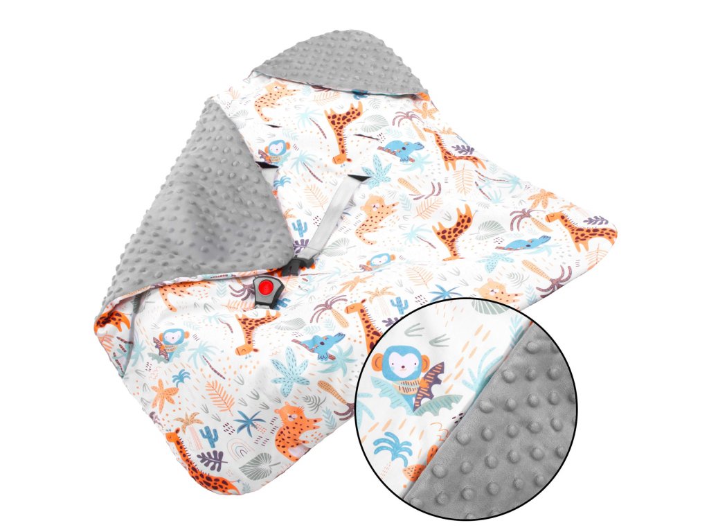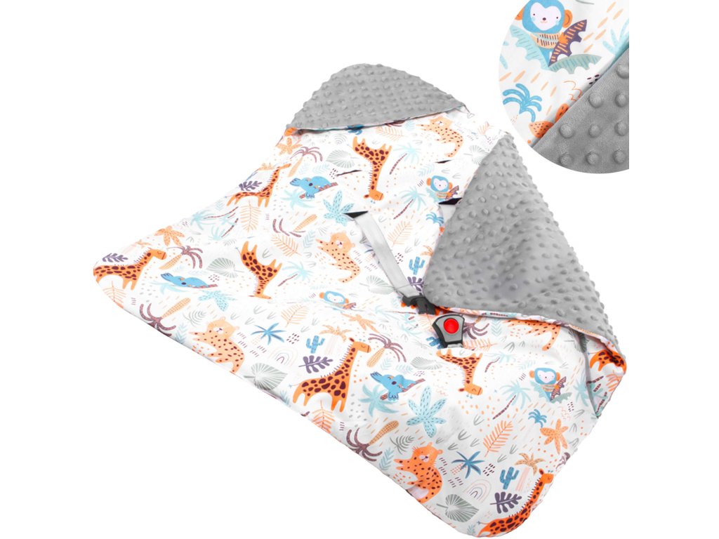 - A takaró az autósülés/hordozó övnyílásaival van ellátva: 1 alsó + 2 x 2 felső (állítható két szinten)