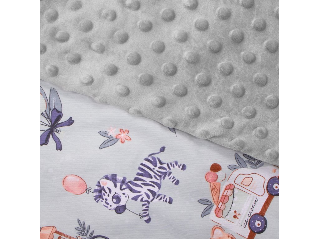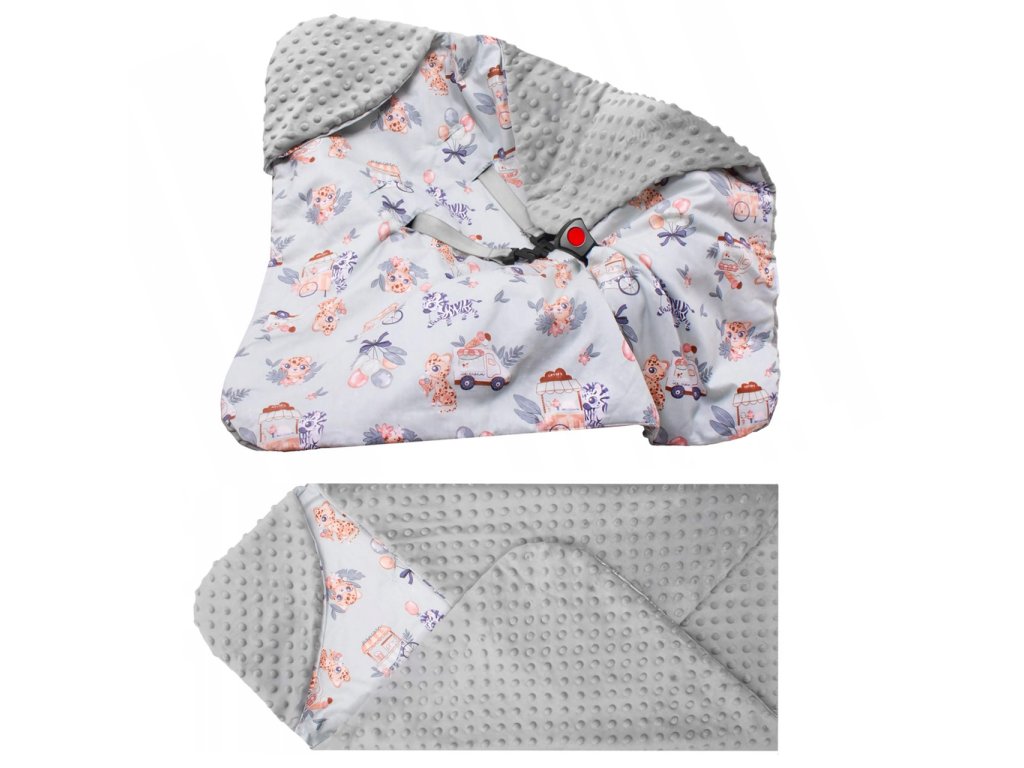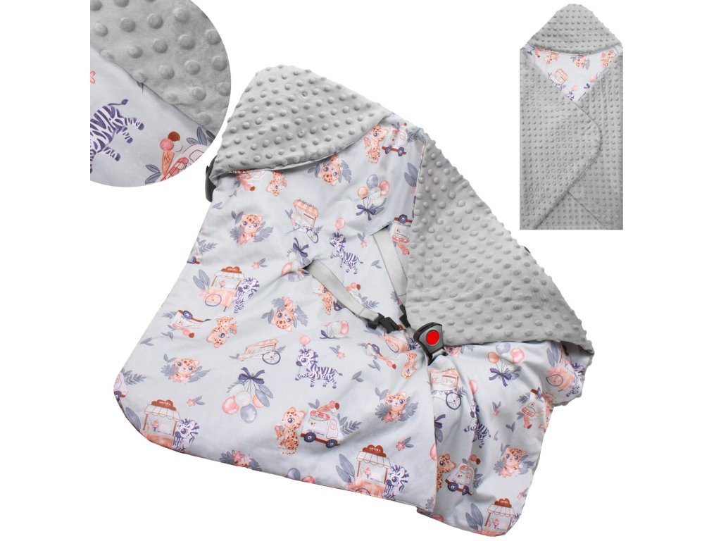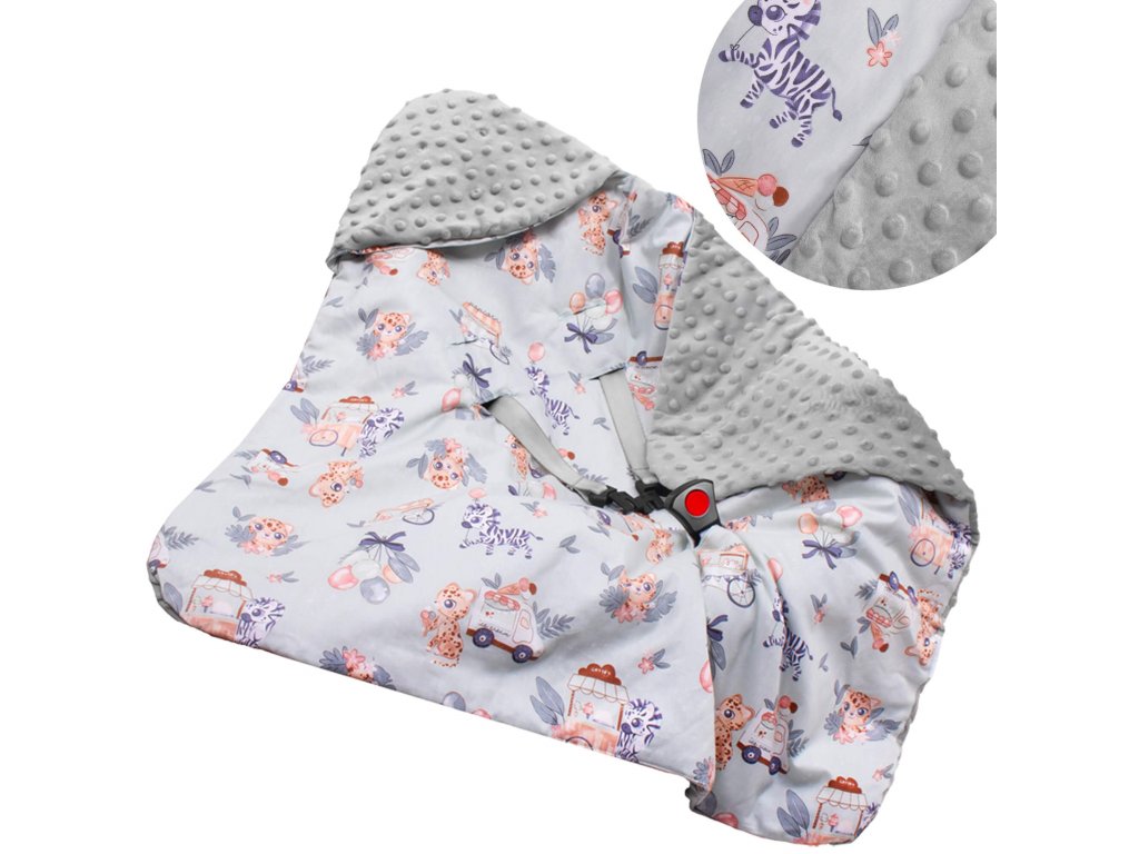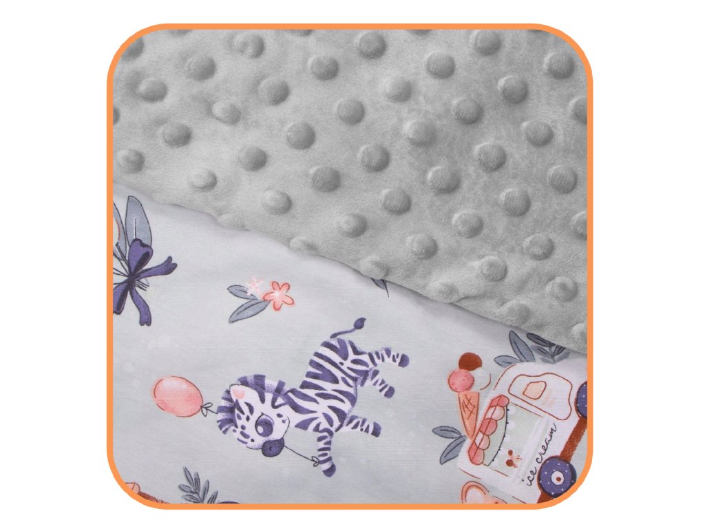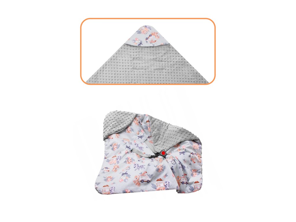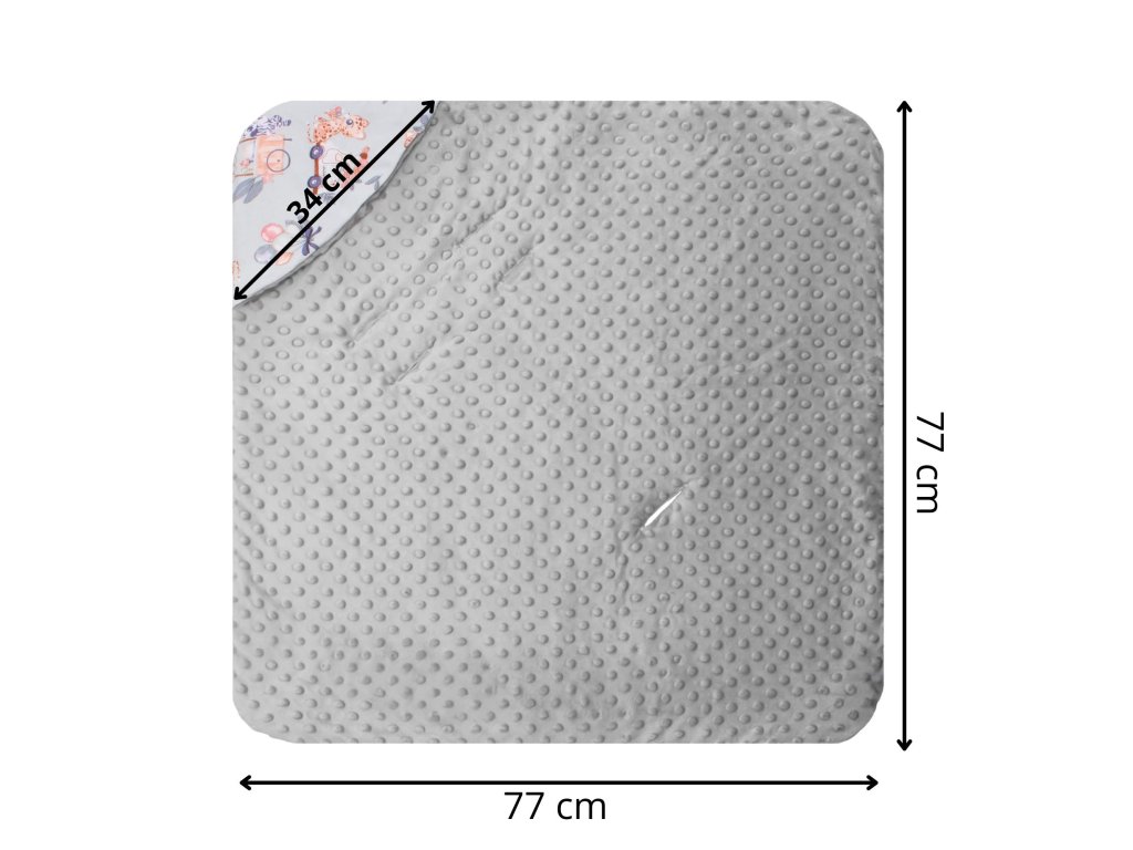 - Belső anyag: minky típusú szövet - bolyhos és puha, dombormintás, szürke színben