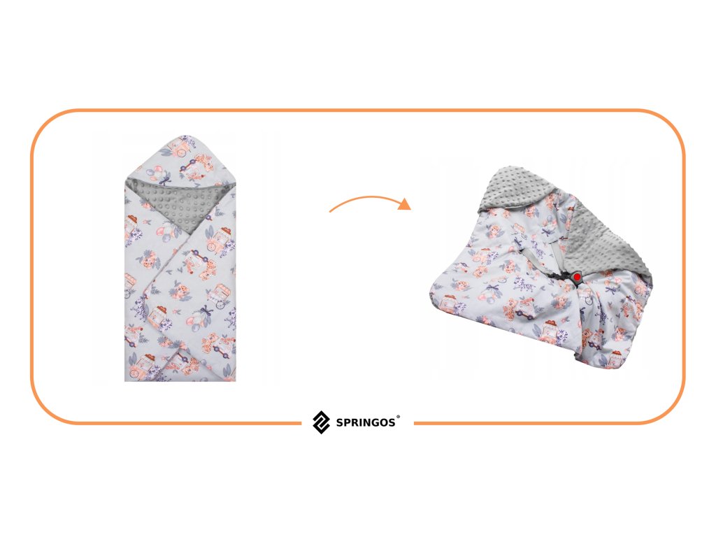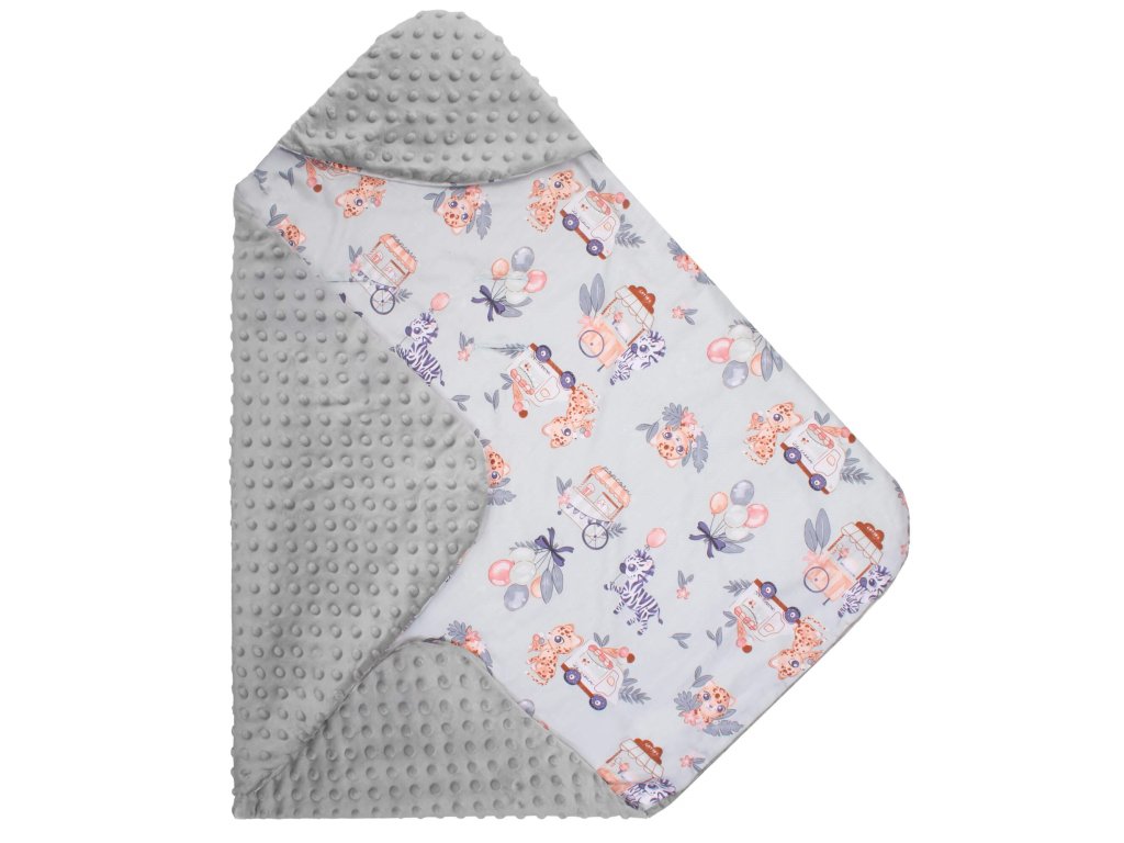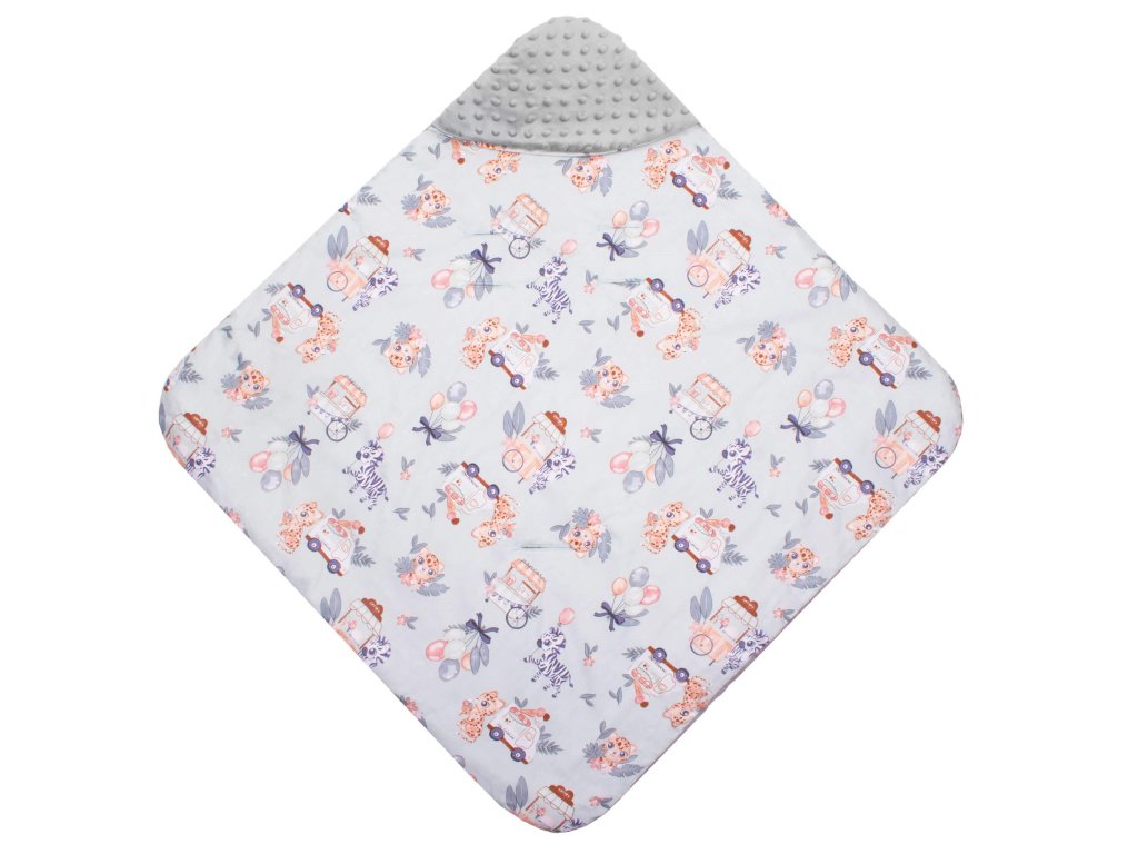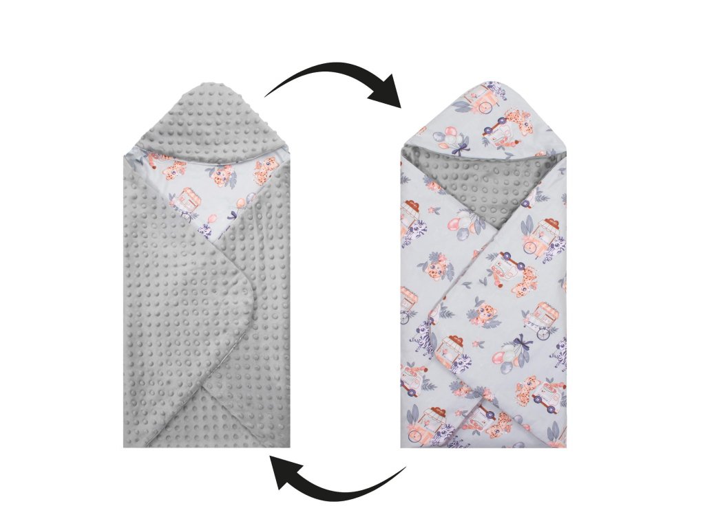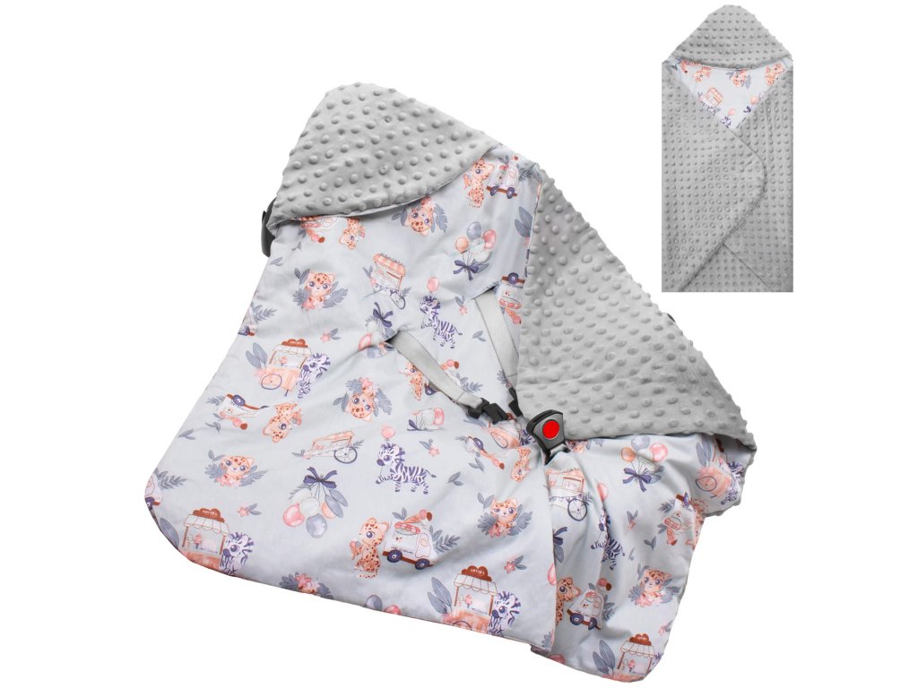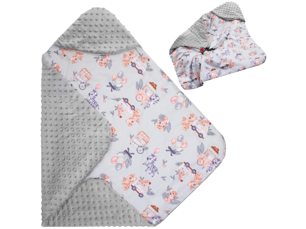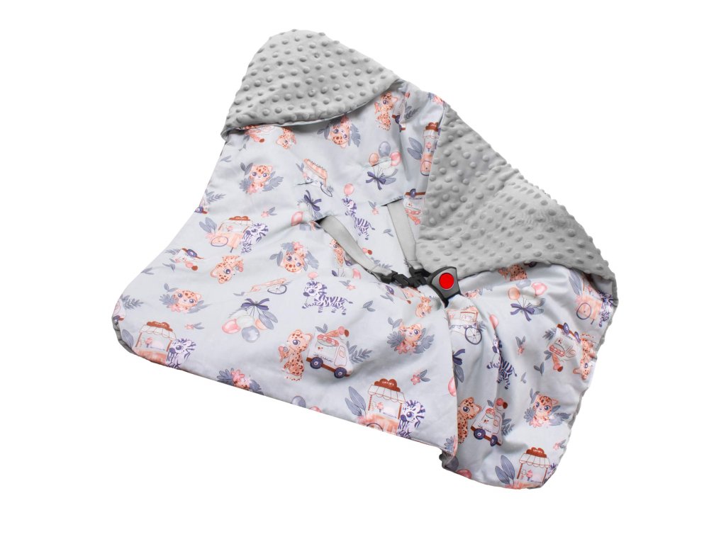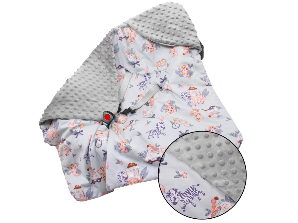 - Belső anyag: minky típusú szövet - bolyhos és puha, dombormintás, szürke színben
