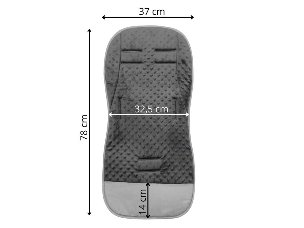 - Belső anyag: minky típusú szövet - bolyhos és puha, dombornyomott, szürke színben.