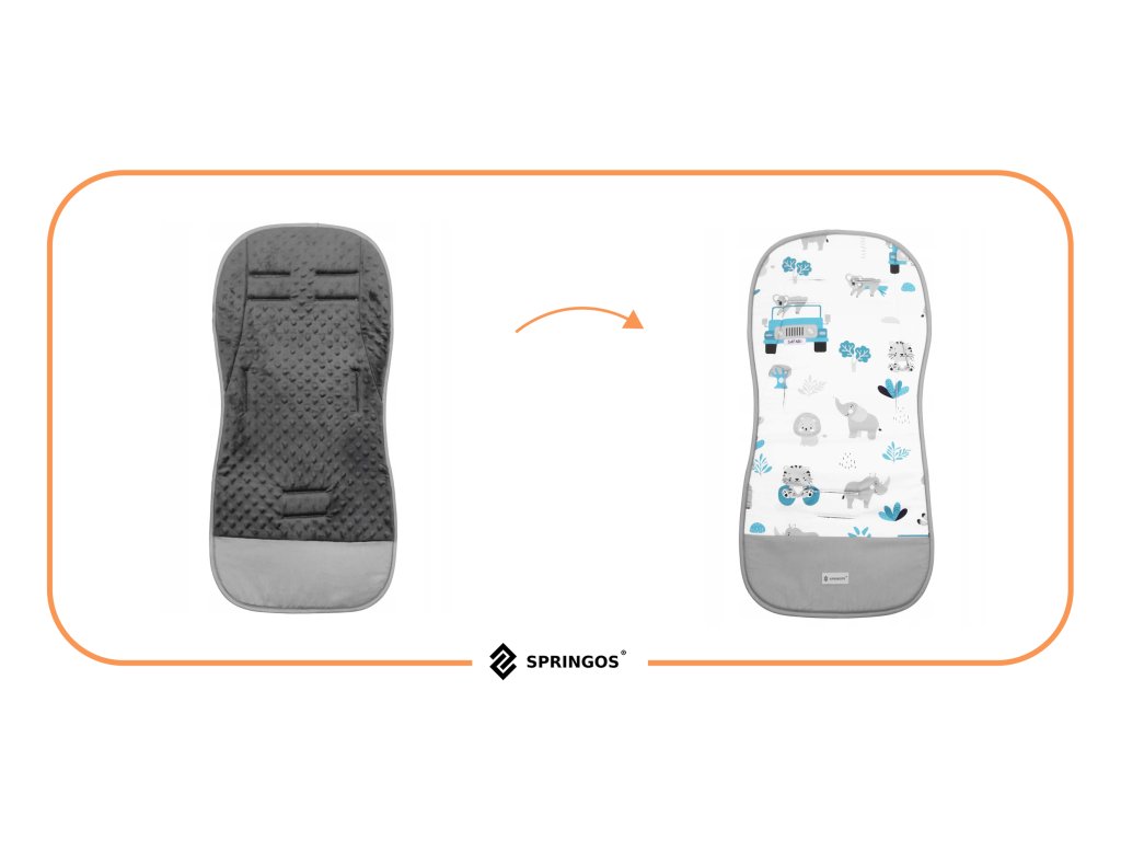 - Mindkét oldalon panel alul sima szürke szövetből (a külső oldalon van a Springos logós címke szürke színben)