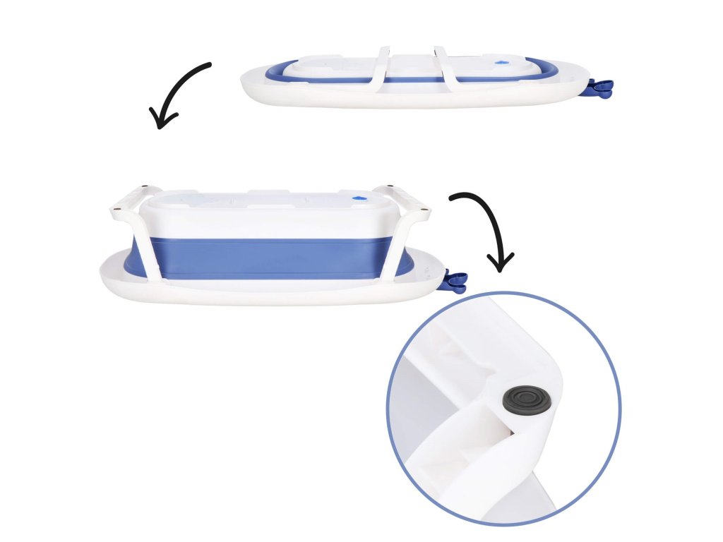- A kád lapra hajtható, ami megkönnyíti a tárolást
