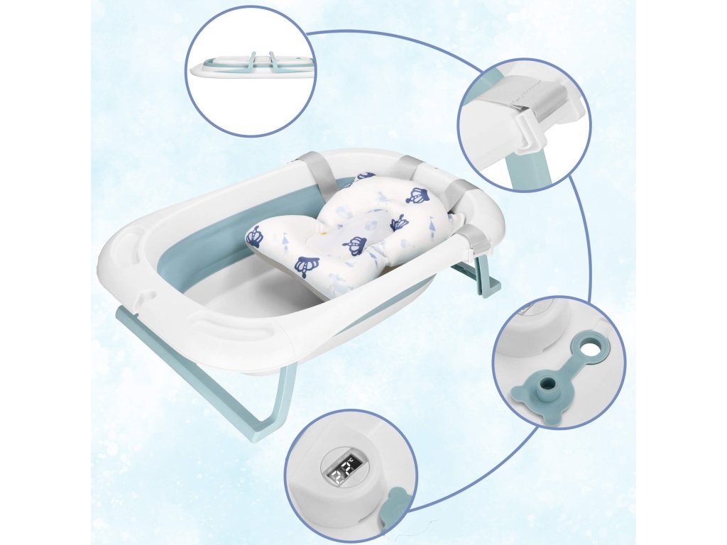 - A készletben található párna 3 rögzítőpánttal van ellátva a kád széléhez.