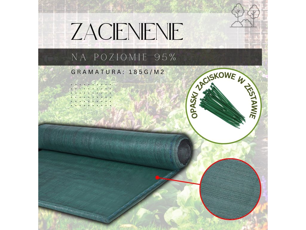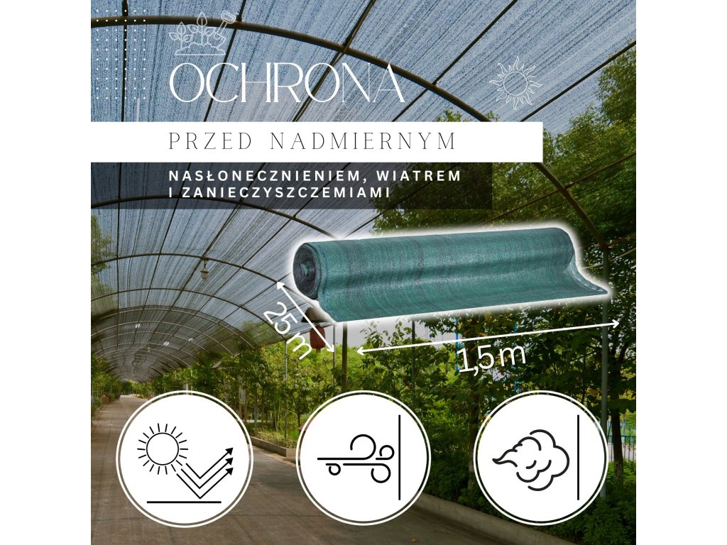 SN0038 ZÖLD ÁRNYÉKOLÓ HÁLÓ 185 GSM 1,5 X 25 M 100 KÖTÖZŐ
