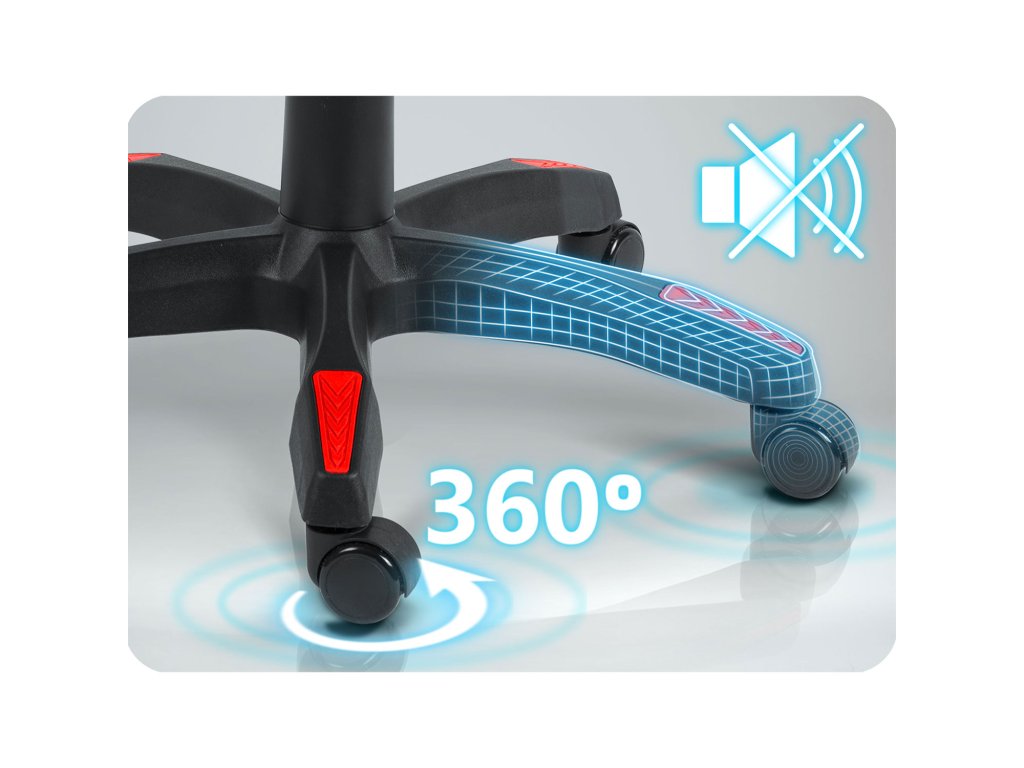 Csendes, bevonatos 360°-os kerekek zökkenőmentes elmozdulást tesznek lehetővé zaj és karcolás nélkül a padlón.