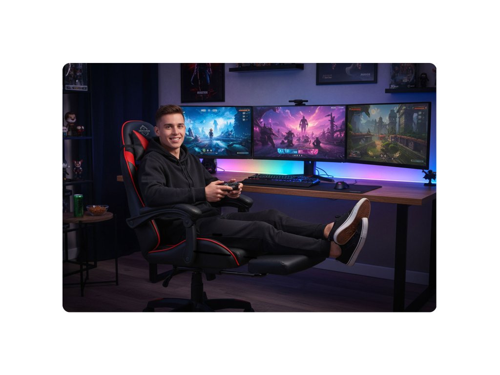 - Teljes kikapcsolódás kinyújtott lábakkal — állítható, kényelmes lábtámasz.
