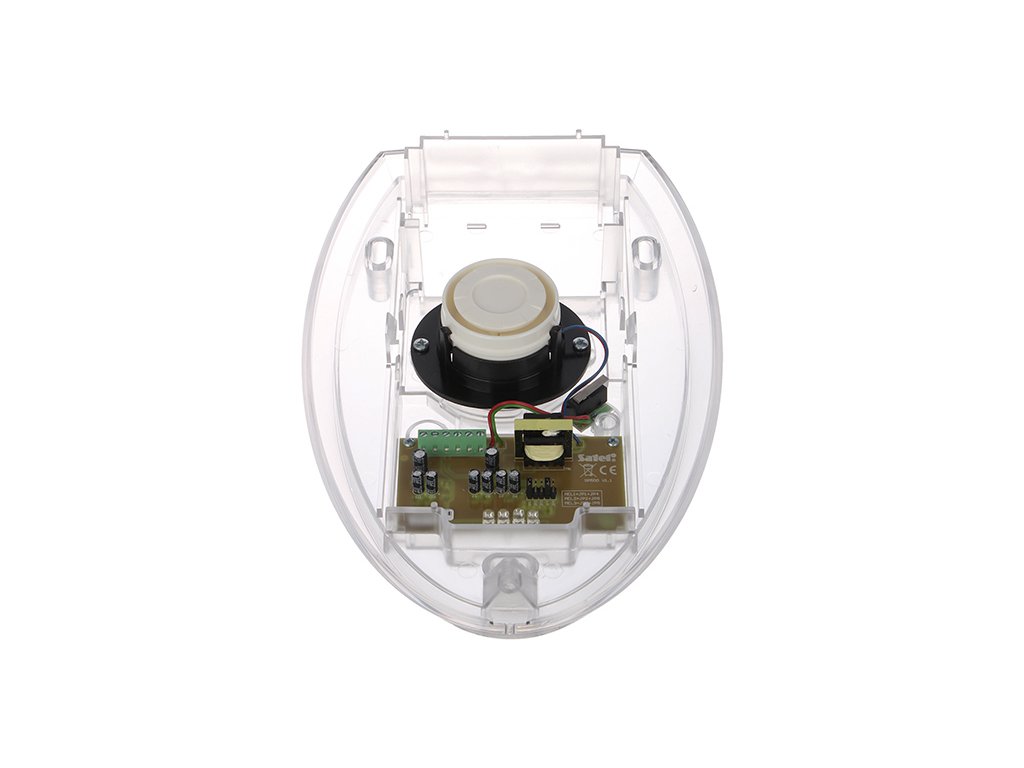 Optikai-akusztikai jelzőberendezés, amely külső falra történő felszerelésre készült, LED diódákkal és piezoelektromos átalakítóval van ellátva. Elérhető háromféle modulált hangjelzés közül az egyik, amelynek intenzitása 120 dB. A polikarbonát burkolat magas mechanikai ellenállóságot biztosít. A jelzőberendezés rendelkezik szabotázsvédelemmel is, amely megvédi a burkolat kinyitásától vagy a falról való leszakítástól. A megfelelő impregnálásnak köszönhetően az elektronikai rendszer is ellenáll az illetékes környezeti hatásoknak.