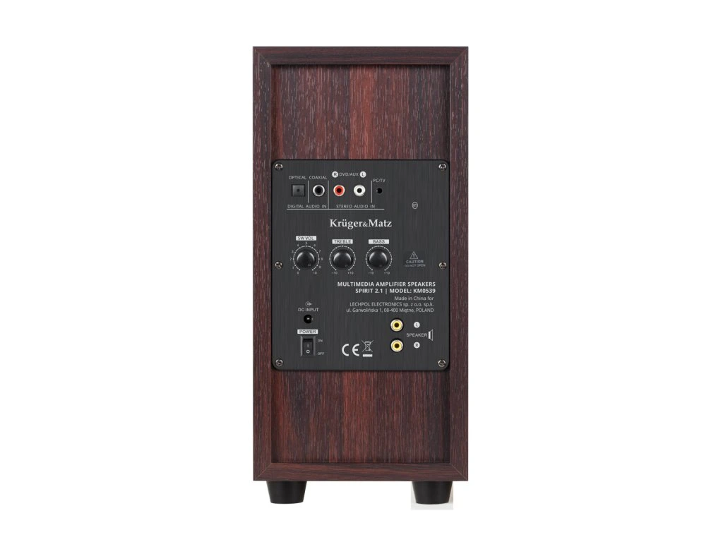 Ha a két hangszóró nem elég, választhat egy mélynyomót is. A Spirit könyvespolc hangszórók beépített erősítővel rendelkeznek, és ideálisak azok számára, akik kisebb helyiségeket szeretnének megtölteni kiváló minőségű zenével. A stílusos fa-fenyő házban két hangszóró, egy 3 hüvelykes középsugárzó és egy 1 hüvelykes magas hangszóró található, ami kiegyensúlyozott és tiszta hangzást biztosít. Ezen kívül a készlet tartalmaz egy 6,5 hüvelykes mélysugárzóval ellátott mélysugárzót is, amely a legalacsonyabb frekvenciák erőteljes reprodukciójához nagy dinamikájú, erőteljes basszushangokat biztosít. A Spirit 2.1 lehetővé teszi külső hangforrások csatlakoztatását az AUX és RCA bemeneteknek köszönhetően. További nagy előnye a Bluetooth modul, amely lehetővé teszi a vezeték nélküli párosítást a mobileszközökkel.