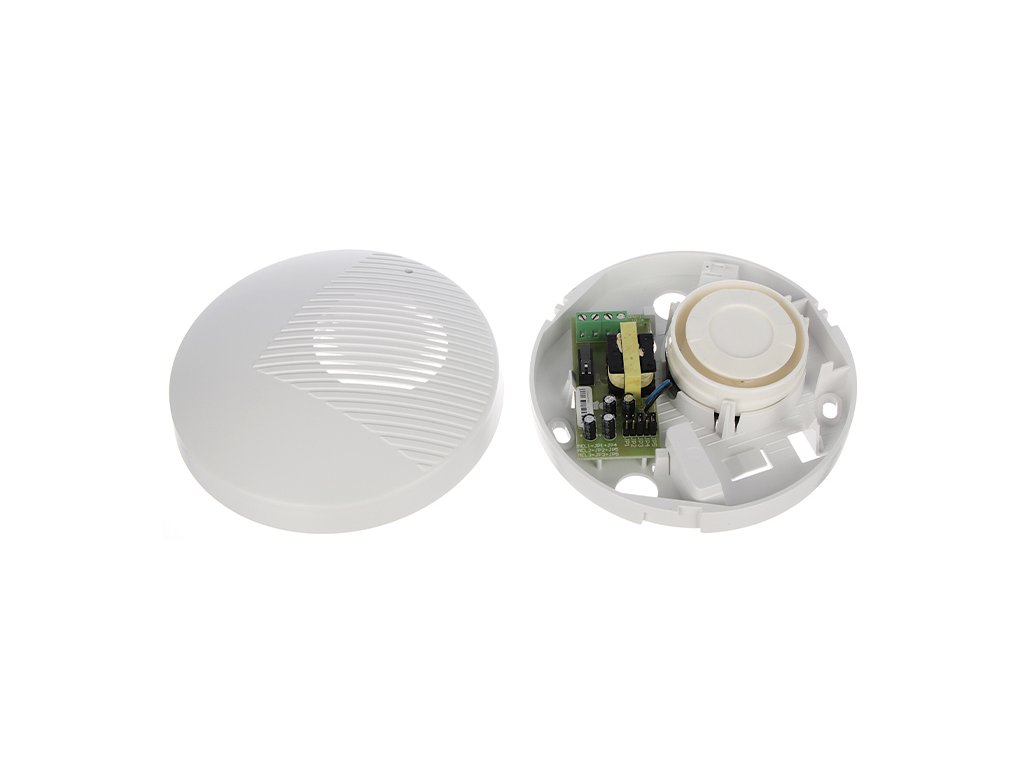 Akusztikus jelző, amelyet épületek belsejében történő telepítésre terveztek, piezoelektromos átalakítóval. Választható háromféle modulált hangjelzés az 120 dB intenzitással. A hangos jel biztosítja a jó hallhatóságot nagy területeken, pl. raktárakban, gyártócsarnokokban, belső parkolóhelyeken stb. Az ovális ház egyszerű fal- és mennyezetre szerelést biztosít. A berendezés ütésálló védelmet biztosít a burkolat nyitása vagy a falról való leszakadás ellen.
