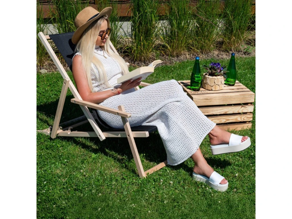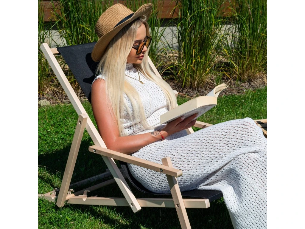 Strandszék DC003 fekete- Tartós bükkfából készült váz