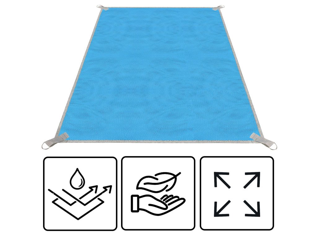 - A kétrétegű hálós rendszer lehetővé teszi, hogy a homokszemek egy kézmozdulattal eltávolíthatók legyenek a szőnyeg felületéről
