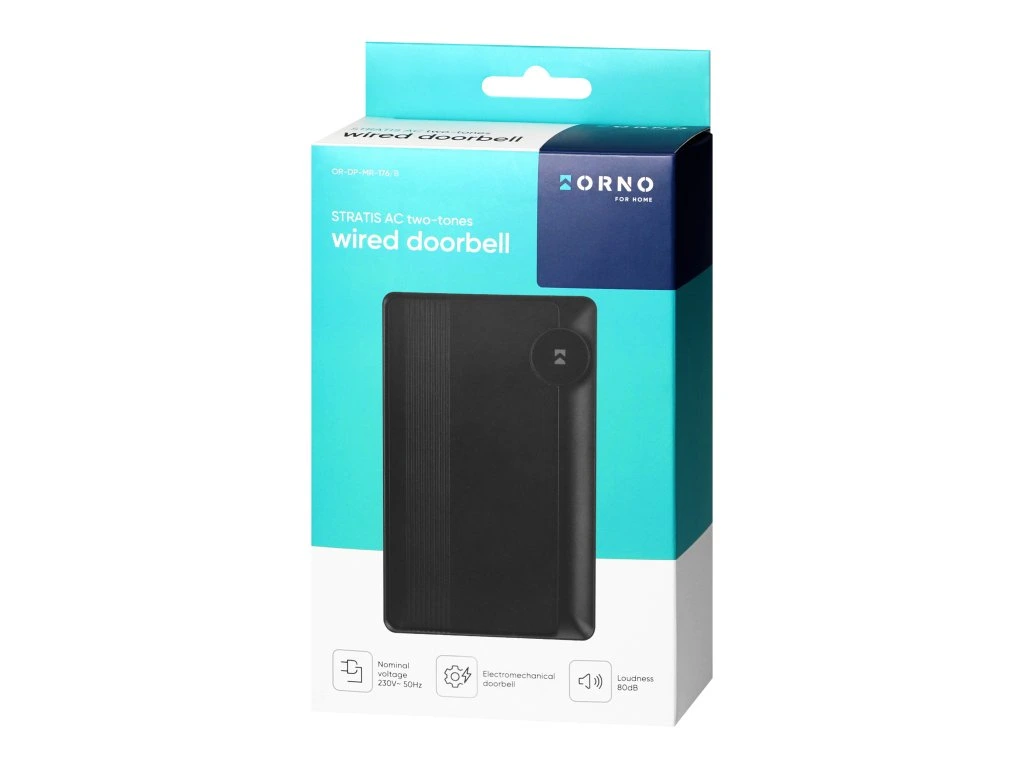 A vezetékes, kétszínű csengő egyszerűen telepíthető és kényelmesen használható. Elektromechanikus csengő, amely zárolás elleni kapcsoló funkcióval rendelkezik - védett a kényszerített folyamatos működés okozta károsodás ellen. A készülék zárt helyiségekben, 230 V AC csengőtelepítéshez használható, például házban, lakásban, boltban stb.A csengő két klasszikus ding-dong hangot bocsát ki, 80 dB hangerővel. A készülék burkolata műanyagból készült.
