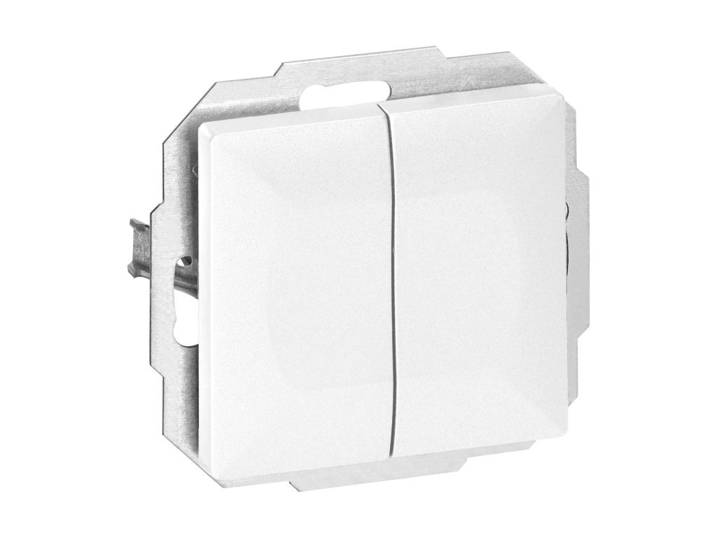 Modularis sorozat szimmetrikus keretlap rendszerrel (1-, 2-, 3-, 4-, 5-modulos), lehetővé téve a termék vízszintes és függőleges pozícióban történő felszerelését. A modern gyorscsatlakozó mechanizmus (a vezetékeket közvetlenül a házba tolják) biztosítja a vezetékek biztonságos és megbízható telepítését és eltávolítását. Az aljzatok hagyományos csavaros csatlakozásokkal vannak felszerelve. A csatlakozók belső kialakítása garantálja a 0,75 mm?-tól 2,5 mm?-ig terjedő vezetékek biztonságos csatlakozását. Erős és masszív szerelőlaprács és kiváló minőségű önvisszahúzó elemek lehetővé teszik a stabil és biztonságos telepítést a dobozban. Speciális rugós elemek segítik a keret házba illesztését.A kettős háromállású kapcsoló süllyesztett szerelésre van adaptálva. A dupla kapcsoló ott talál alkalmazásra, ahol két áramkör független vezérlésére van szükség. A termék a kör áramkörének be- és kikapcsolására szolgál, amelyhez a lépcsővilágítás van csatlakoztatva. Az ilyen típusú kapcsolókat mindig párban szerelik be. Az ilyen típusú kapcsoló funkciója például a világítás aktiválása különböző helyekről vagy emeletekről. Hasonlóképpen, a hálószobában lévő világítást, amit a szobába belépve kapcsol be, majd közvetlenül az ágy mellett szeretne kikapcsolni, anélkül, hogy vissza kellene mennie a fő kapcsolóhoz, meg lehet valósítani. Beltéri használatra (IP20) javasolt.