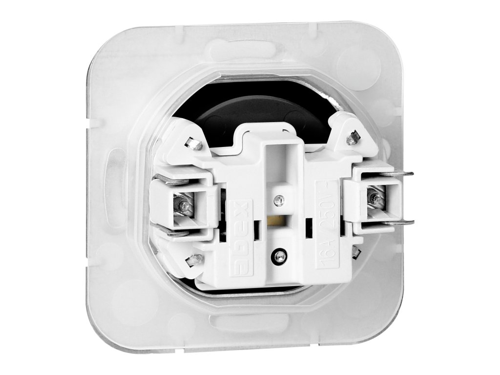 Moduláris sorozat keretlap rendszerrel. Egy sor modern kapcsoló és aljzat, amelyek harmonikusan illeszkednek az eredeti designer belső terekhez. A kapcsolók modern gyorscsatlakozó mechanizmusa (a vezetékek közvetlenül a testbe tolva csatlakoznak) biztosítja a vezetékek biztonságos és biztonságos telepítését és eltávolítását. Az aljzatok hagyományos csavaros csatlakozással vannak felszerelve. Az érintkezők belső kialakítása biztosítja a 0,75 mm? és 2,5 mm? közötti vezetékek biztonságos csatlakoztatását. Erős és robusztus szerelő lemezrács és speciális rögzítő elemek lehetővé teszik a stabil és biztos telepítést a dobozban.Egyszeres francia típusú aljzat 2P+E, időjárásálló fedéllel. Süllyesztett szerelésre tervezve. Beltéri használatra (IP20).