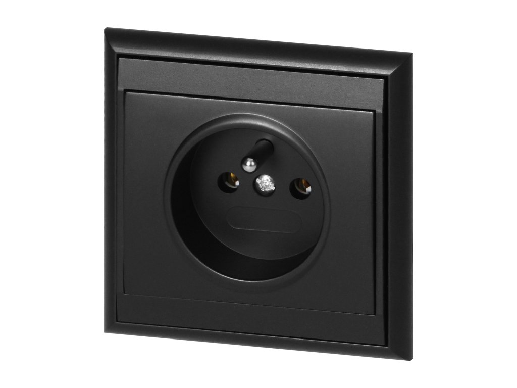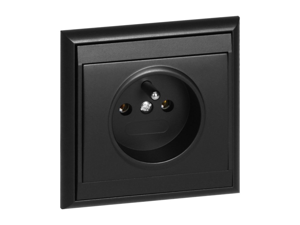Egyszerű francia típusú aljzat, 2P+E. Süllyesztett szerelésre tervezve. Beltéri használatra ajánlott (IP20).