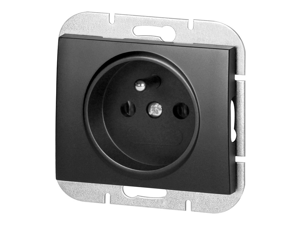 Moduláris sorozat keretlemez-rendszerrel. Modern kapcsolók és aljzatok sorozata, amelyek harmonikusan illeszkednek az eredeti dizájnbelsőkkel. A kapcsolók modern gyorscsatlakozó mechanizmusa (a vezetékeket közvetlenül a házba nyomva csatlakoztatják) biztonságos és megbízható vezeték be- és kiszerelést tesz lehetővé. Az aljzatok hagyományos csavaros csatlakozásokkal vannak ellátva. A terminálok belső kialakítása biztosítja a 0,75 mm?-től 2,5 mm?-ig terjedő vezetékek biztonságos csatlakoztatását. Erős és robusztus rögzítőlemez rács és speciális rögzítő elemek biztosítják a stabil és biztonságos beépítést a dobozban.Egyszeres francia típusú aljzat, 2P+E. Süllyesztett szerelésre tervezett. Beltéri használatra javasolt (IP20).