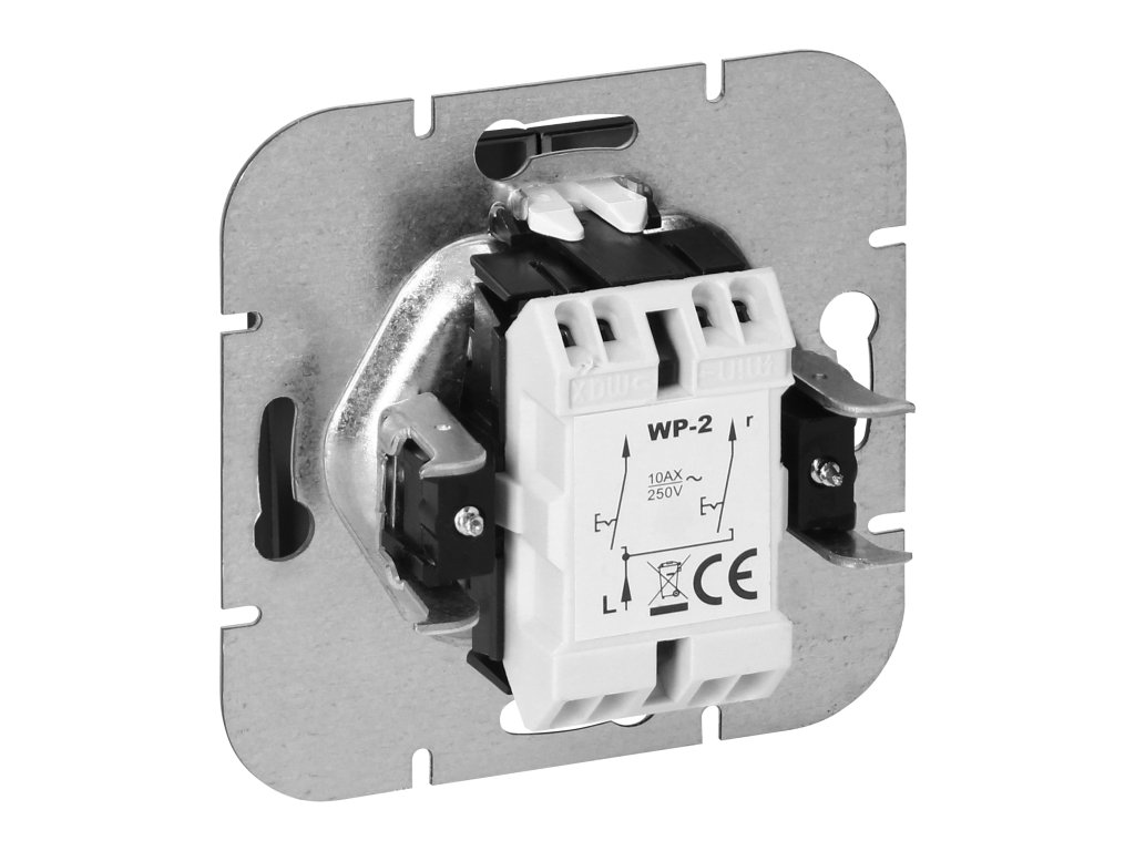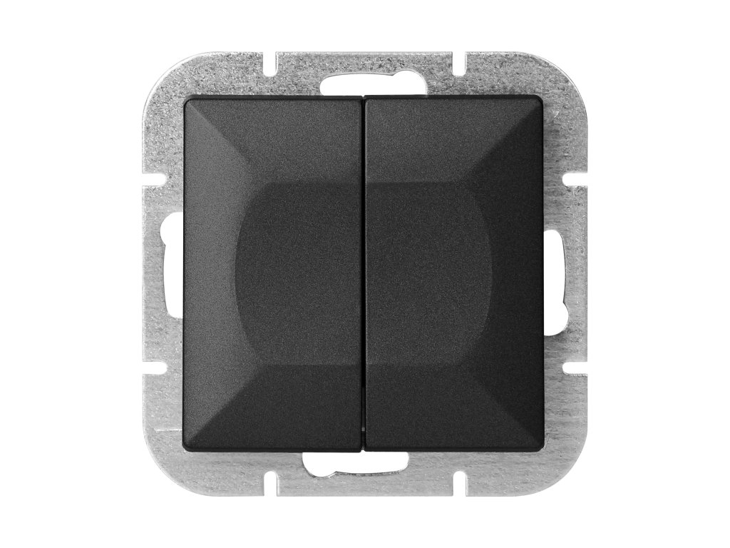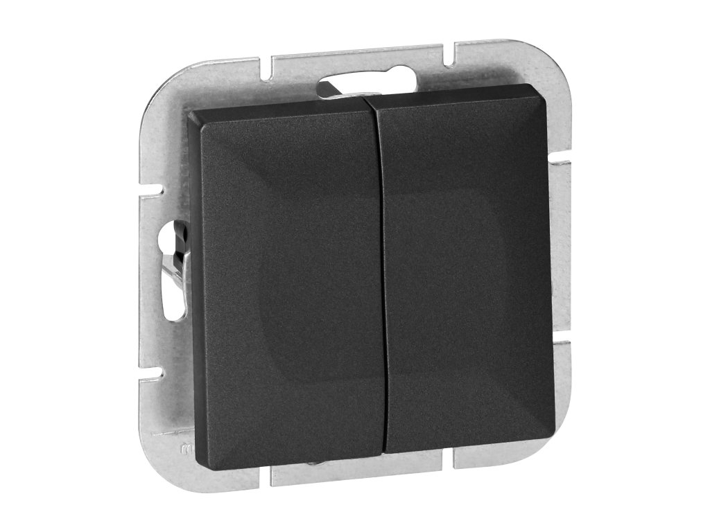 Moduláris sorozat szimmetrikus keretlemezes rendszerrel (1-, 2-, 3-, 4-, 5-modulos), amely lehetővé teszi a termék vízszintes és függőleges pozícióban történő felszerelését. A modern gyorscsatlakozó mechanizmus (a vezetékek közvetlenül a testbe tolva csatlakoznak) biztos és biztonságos vezetéktelepítést és eltávolítást biztosít. A csatlakozók hagyományos csavaros csatlakozásokkal vannak felszerelve. A kapcsok belső kialakítása garantálja a vezetékek biztos csatlakozását 0,75 mm?-től 2,5 mm?-ig. Az erős és masszív szerelőlap rácsozata és a kiváló minőségű önvisszahúzó elemek lehetővé teszik a stabil és biztonságos telepítést a dobozban. Különleges rugózó elemek segítik a keret testbe illesztését.A kétgombos kapcsoló süllyesztett szereléshez van adaptálva. A terméket világítás szabályozására használják, például csillárokból és hagyományos vagy modern LED izzókból álló lámpák esetében. Lehetővé teszi a világítás be- és kikapcsolását, két vagy több zónára osztva. Beltéri használatra ajánlott (IP20).