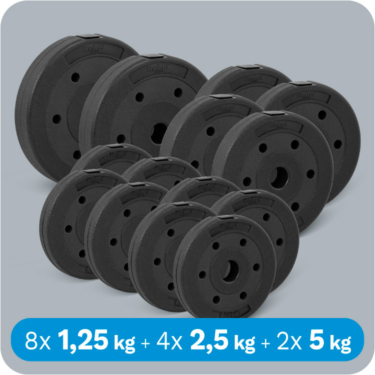 Súlyzókorongok ( 8x1,25kg + 4x2,5kg + 2x5kg ), 31mm, REBEL ACTIVE