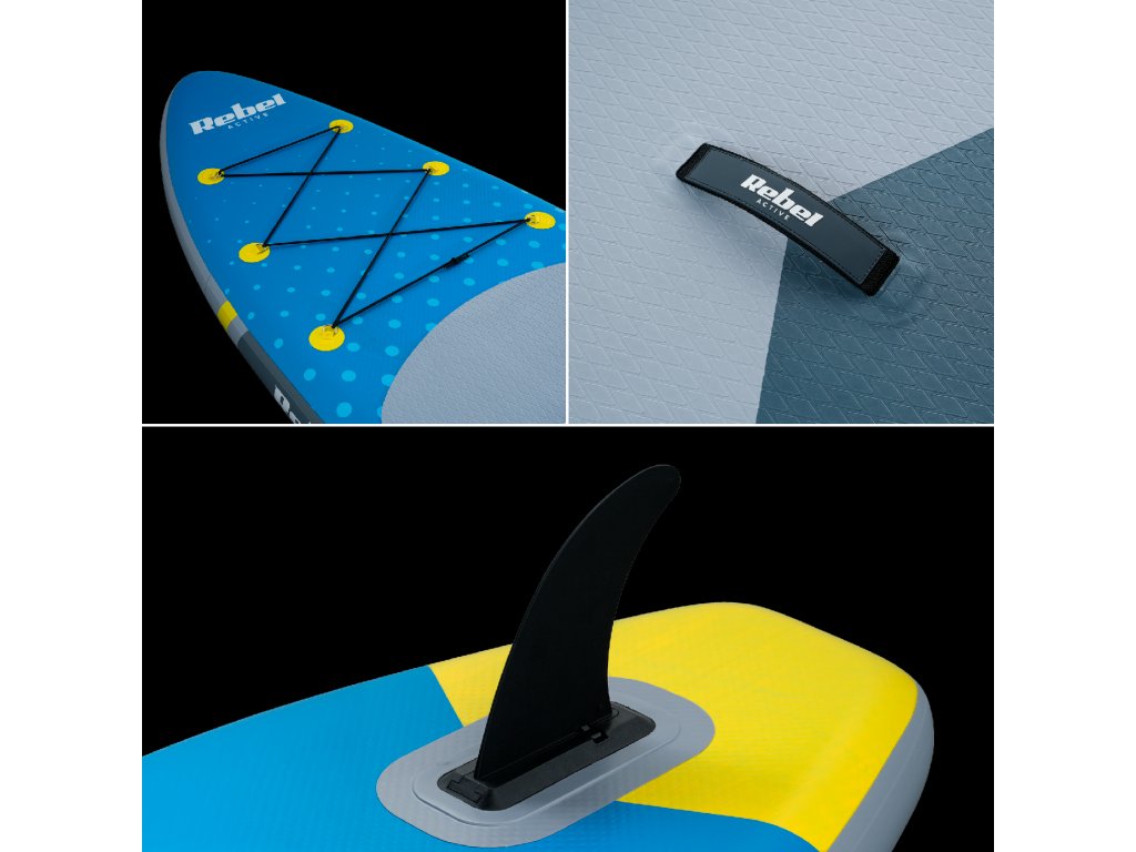 A Rebel Active álló paddleboard szilárd és stabil felépítésével tűnik ki, amely drop-stitch technológiával készült. Ennek köszönhetően, függetlenül a képességek szintjétől, biztonságosan közlekedhetsz a vízen akár állva, akár ülve. A 3 mm vastag EVA habbal borított csúszásmentes fedélzet kiváló tapadást biztosít, így még az intenzív deszkázás sem okoz problémát.
