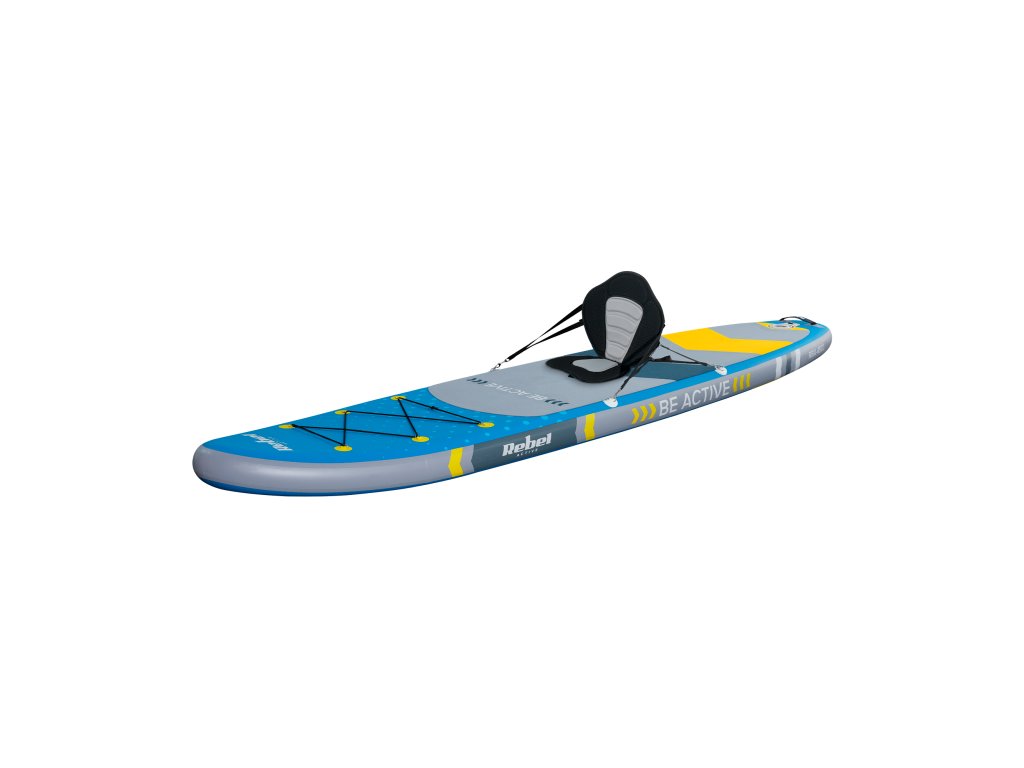 A még nagyobb kényelem és stabilitás érdekében az evezés során a Rebel Active paddleboard szett kényelmes háttámlás üléssel rendelkezik, amelyet könnyen telepíthetsz és eltávolíthatsz a preferenciáid szerint. Ez a megoldás kényelmes pihenést tesz lehetővé hosszabb vízi utazások során. Ülj le, lazíts, és élvezd a kilátást és a természet nyugalmát.