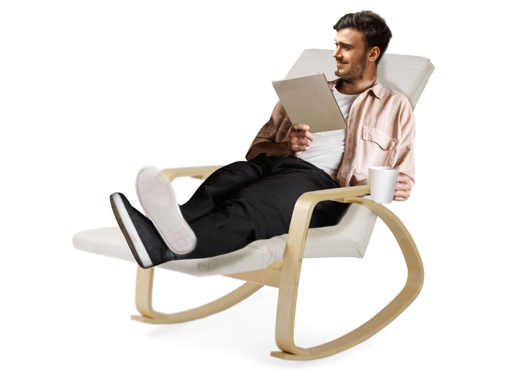 A lábzsámollyal ellátott hintaszék tökéletes kikapcsolódás egy stresszes nap után. A kényelmes karosszékben filmet nézni vagy könyvet olvasni tiszta élvezet.