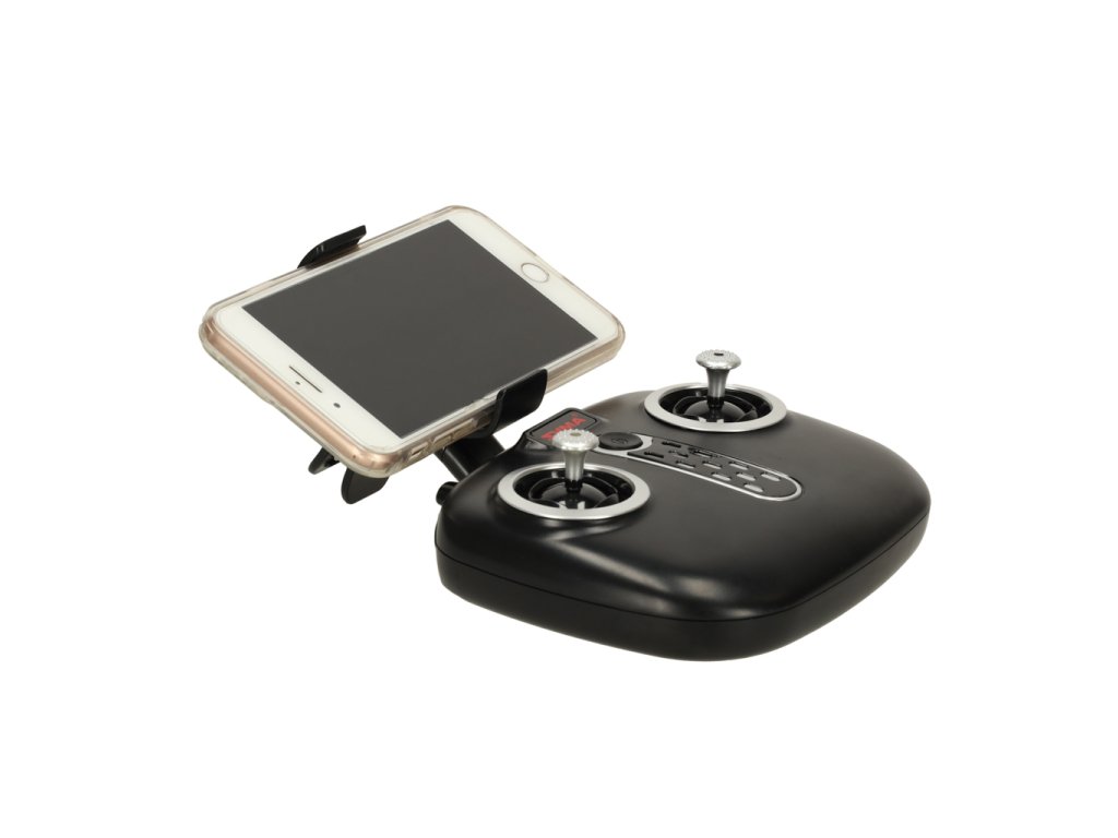 A telefon rögzítése a mellékelt tartóra és az alkalmazás letöltése jelentősen megkönnyíti a drón irányítását - lehetővé teszi a kamera kényelmes beállítását és megkönnyíti az egyes funkciók aktiválását.