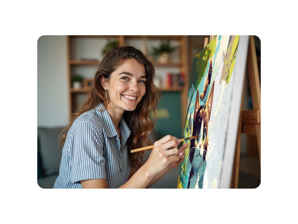- A vonalak nem látszanak át. Teljes lefedettség. A megfelelő festékeknek és alapnak köszönhetően a kész festmény szépen fog kinézni látható fekete vonalak és elszínezett sorszámok nélkül.