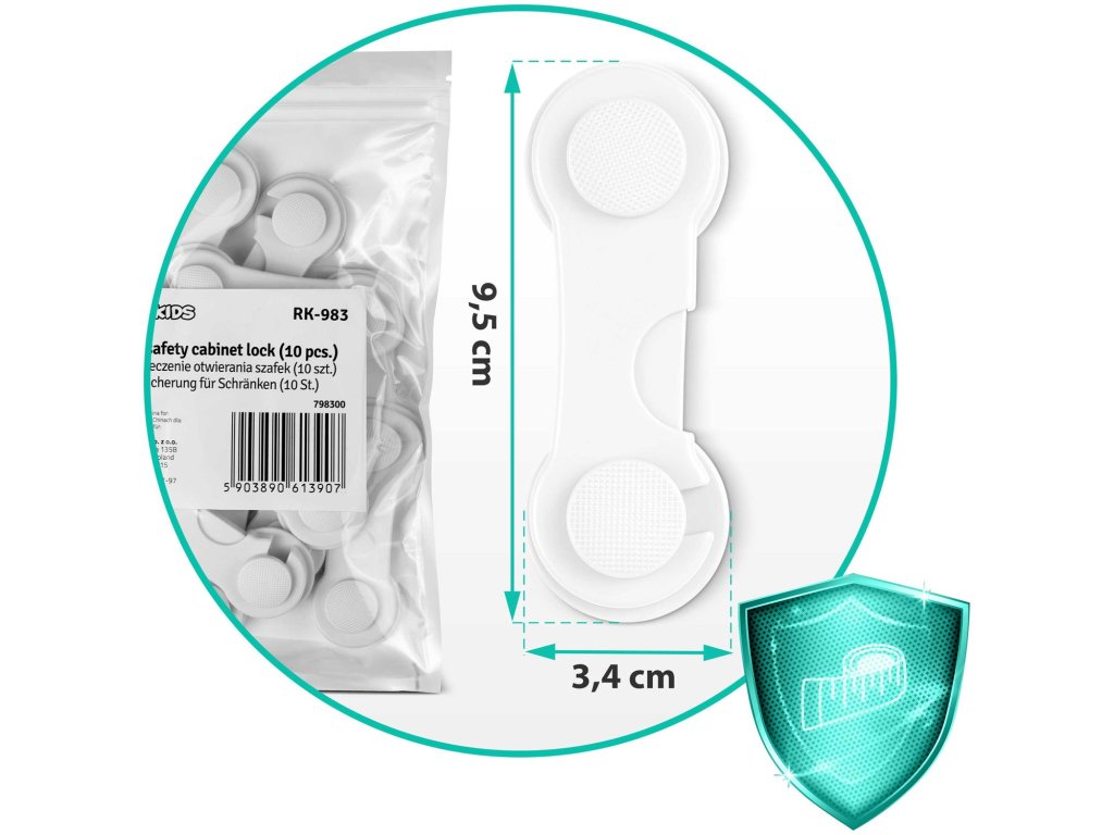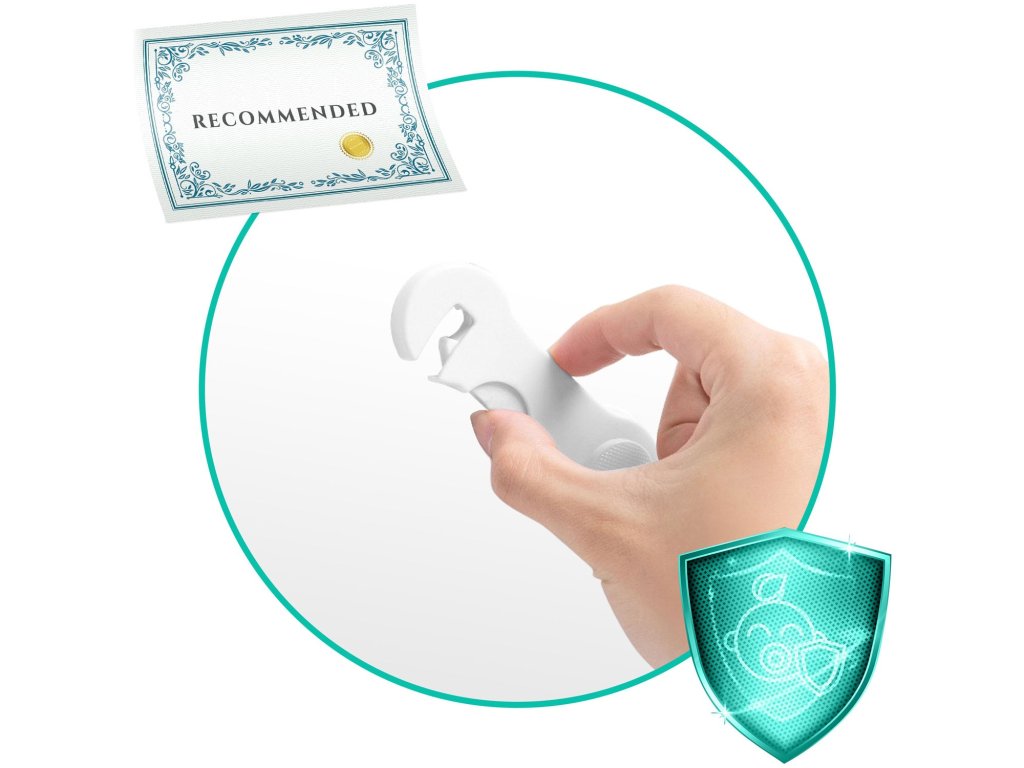 Egypraktikus, kicsi és esztétikus biztonsági eszköz, amely megakadályozza, hogy gyermeke hirtelen kinyisson egy szekrényt vagy fiókot.