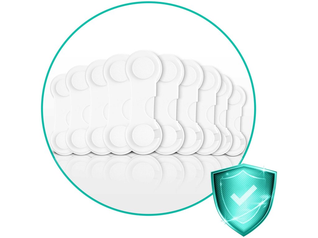 A készlet 10 állítható biztonsági eszközt tartalmaz.