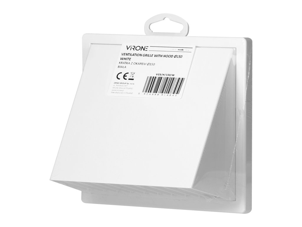 Rács kültéri használatra, mint a mechanikus szellőzés vége. A burkolat formája védi a külső víz bejutásától. A visszacsapó szelep véd a kedvezőtlen visszaáramlások ellen, a háló pedig blokkolja a madarak hozzáférését és megakadályozza, hogy szemét essen a szellőzésbe.Rács anyaga: ABS.
