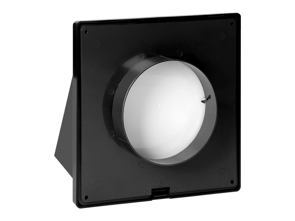 Rács kültéri használatra, mint a mechanikus szellőzés végpontja. A burkolat alakja megvédi a kívülről bejövő víztől. A visszacsapószelep védi a kedvezőtlen visszaáramlásoktól, a háló pedig blokkolja a madarak hozzáférését és megakadályozza a szemét bejutását a szellőzésbe.Rács anyaga: ABS.