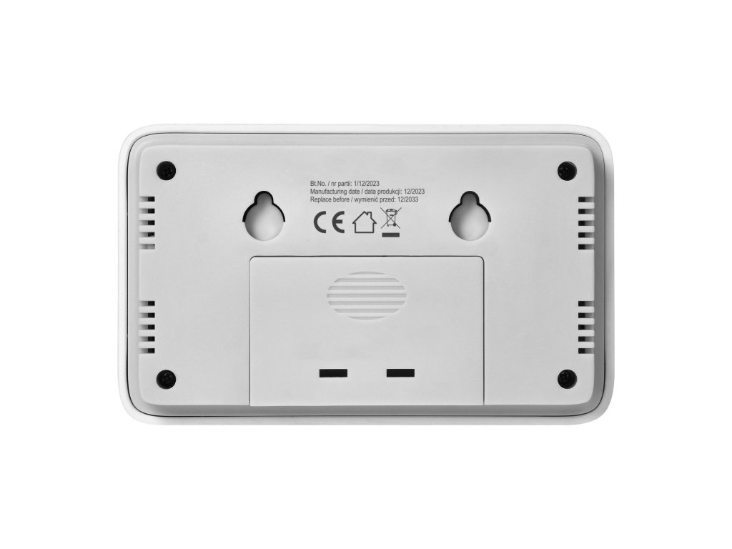 - 10 éves élettartam: A fejlett technológiának köszönhetően ez az érzékelő akár 10 éves elemműködést biztosít, ezáltal hosszan tartó és megbízható védelmet nyújt anélkül, hogy rendszeres elemcserére lenne szükség.