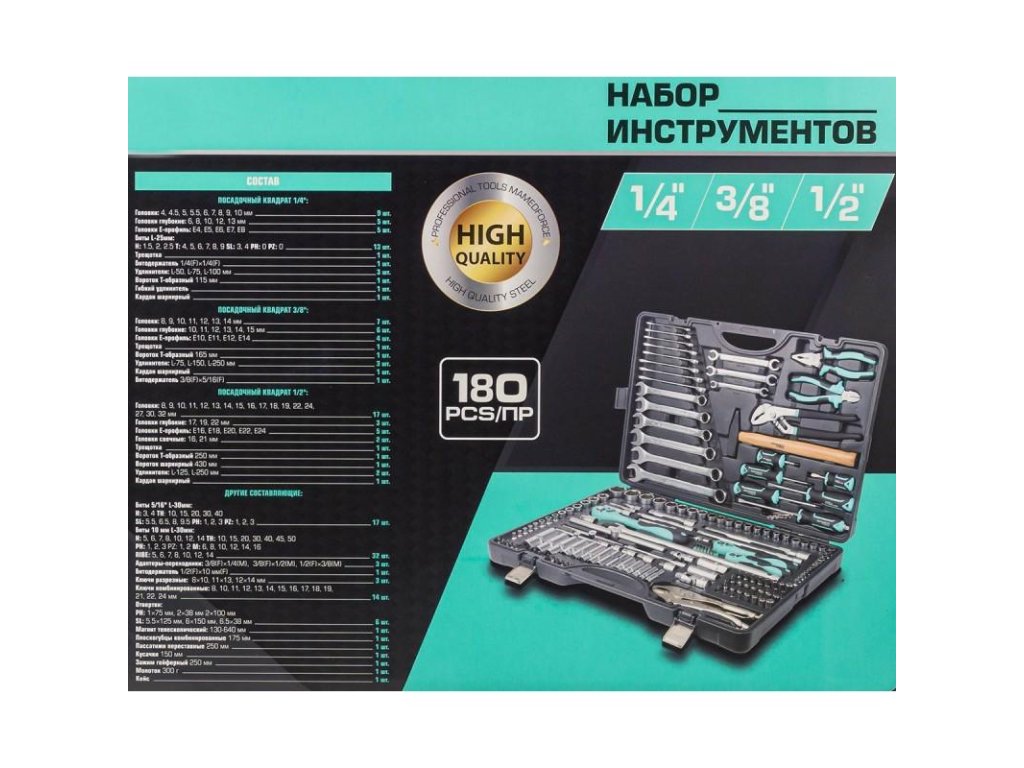 Szerszámkészlet 1/4", 3/8" és 1/2" - 180 db.