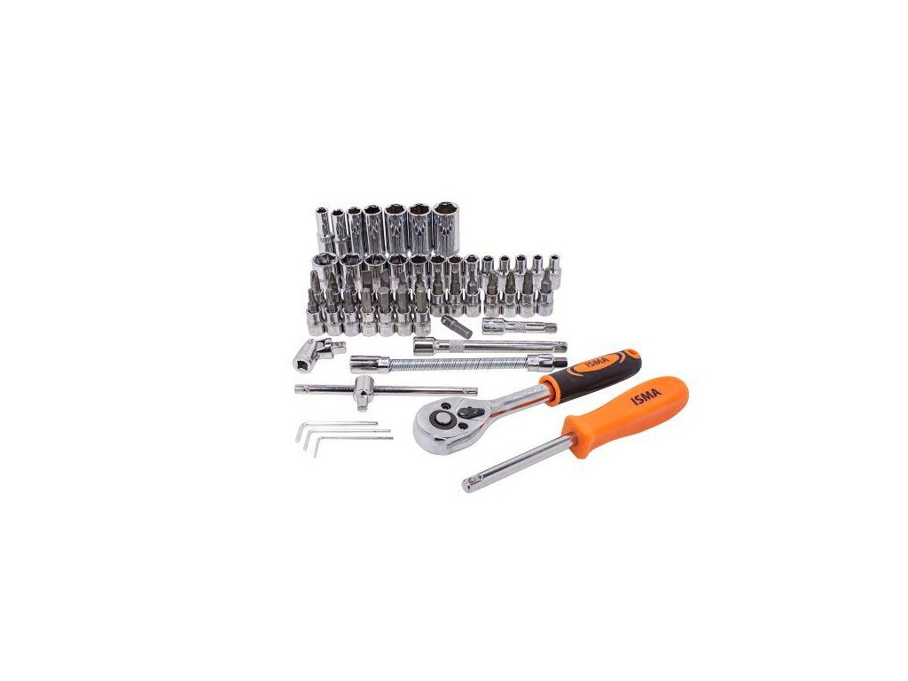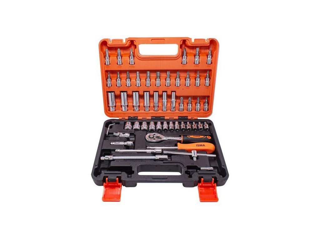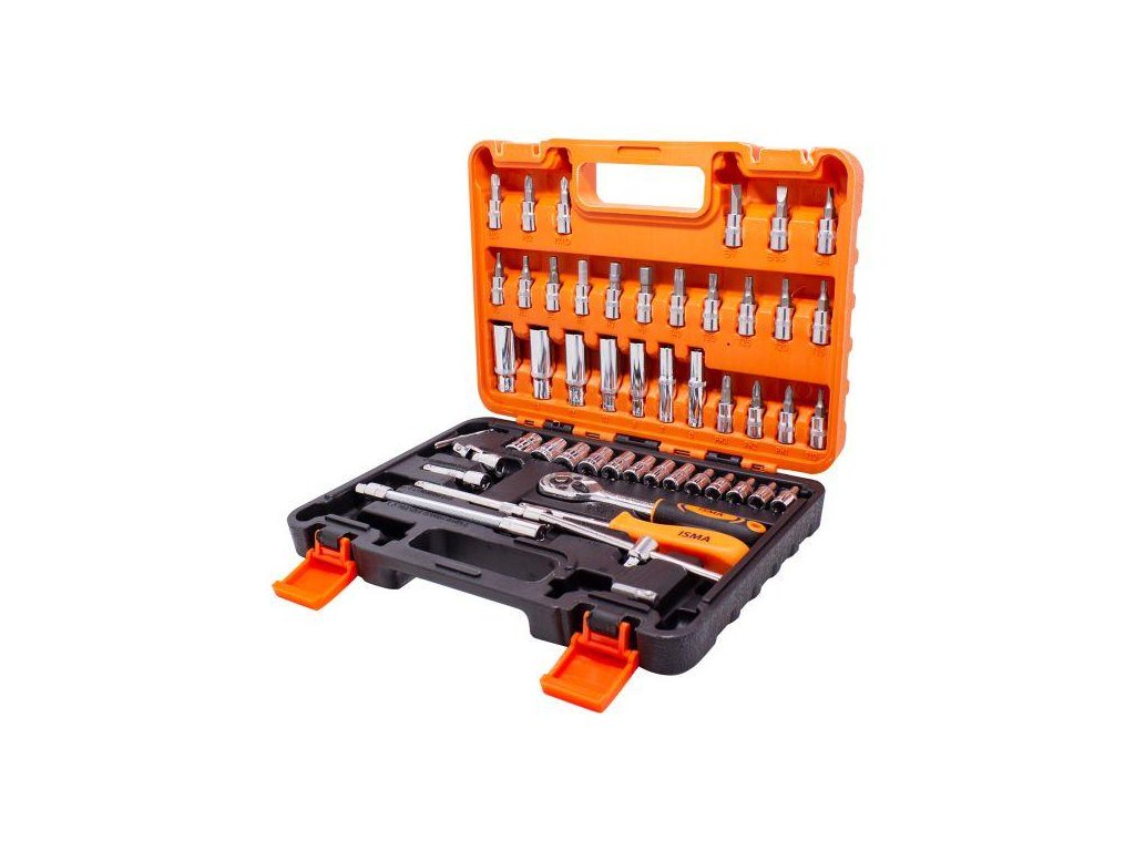 A készlet tartalmaz egy racsnit, amely tartós fogaskereket tartalmaz. A készlet gazdag fejsorozatot (4-től 14 mm-ig) és gyertyakulcsokat, valamint csavarhúzó végeket (lapos, kereszt, hatszögű, Torx) tartalmaz. Kiegészítik hosszabbítók (beleértve egy rugalmasat), univerzális ízület, hatszögletű kulcsok, T-típusú nyél és bit tartó. Az elemek praktikusan válogatva helyezkednek el a táskában. A készlet kiválóan alkalmas mind professzionális, mind hobbi használatra. A professzionális gyártás és a megkeményített króm-vanádium acél biztosítja a tartósságot és megbízhatóságot. Az összes kulcs mérete fel van tüntetve a felhasználó kényelme érdekében.A készlet tartalmazza: