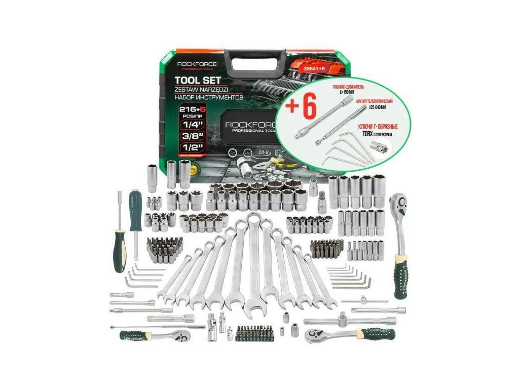 Szerszámkészlet 216+6 db 1/4", 3/8" - 216+6 db-os szerszámkészlet, 1/4" és 3/8" méretben