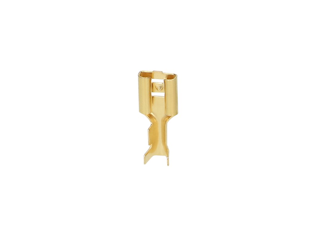 A nem szigetelt pengés foglalatos terminál gyors és megbízható elektromos kábelcsatlakozást biztosít, megvédve azokat a kontaktus teljes hosszán. Alkalmas többmagos és hajlékony kábelekhez, amelyek névleges keresztmetszete 0,5-1 mm?. A csatlakozó stabil kapcsolatot garantál a 6,3 mm-es lapos végének és a 0,7 mm vastag vezető anyagának köszönhetően.A rézből készült termék jó elektromos vezetőképességgel és a csatlakozás nagy tartósságával rendelkezik. Arany színű.