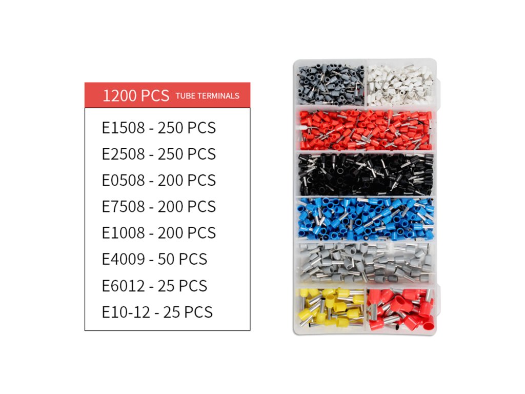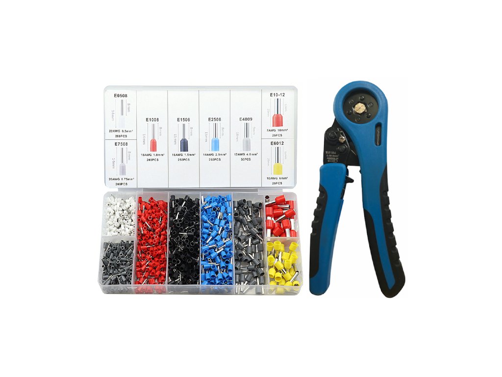 Szigetelt kábelvégző készlet + krimpelő akár 10 mm-ig Krimpelő szigetelt és nem szigetelt, egyszeres és kettős csövekhez. HAT-SZÖGLETŰ krimpelési rendszer, amelynek köszönhetően krimpeléshez nincs szükség nagy erőkifejtésre Kiváló minőségű kidolgozás, biztos krimpelés a reteszelő rendszernek köszönhetően, amely lehetővé teszi a fogó kinyitását csak a krimpelés befejezése után. Nagy kezelési kényelem a praktikus forma és alacsony súly miatt. Az eszköz praktikus, nagyon tartós. Gumírozott fogantyúk javítják a munka kényelmét. Munkaterület: Kettős csövek esetében: 0,5-2,5 mm2 Egyszeres csövek esetében: 0,06-10 mm2 Műszaki adatok: Végződések: szigetelt és nem szigetelt, egyszeres és kettős, Súly: 0,36 kg, Hosszúság: 17,5 cm, Edzett fej, Praktikus automatikus krimpelő, Egyszerű krimpelés egy kézzel, Racsnirendszer támogatja a krimpelést, Kiváló minőségű kidolgozás és hosszú élettartamú eszköz, Megfelel az EN 50109-1 szabványnak. A legjobb modellünk krimpelés támogatási rendszerrel. Az ajánlott modellben a krimpelési folyamatot a racsnirendszer további támogatásával fejlesztették. Speciális mechanizmus lehetővé teszi az egykezes kényelmes krimpelést. Hatszögletű krimpelési rendszer Az ajánlott modellben a cső hat oldalról van krimpelve, ami azt jelenti, hogy nagyon szorosan csatlakozik a vezetőhöz. Az ilyen megoldás további előnye a krimpelt cső alakja, amely körhöz közelít, ami lehetővé teszi az ilyen krimpelt kapocs könnyebb bedugását a dugaszolóaljzatba. Hatszögletű krimpelési rendszer Az ajánlott modellben a cső hat oldalról van krimpelve, ami azt jelenti, hogy nagyon szorosan csatlakozik a vezetőhöz. Az ilyen megoldás további előnye a krimpelt cső alakja, amely körhöz közelít, ami lehetővé teszi az ilyen krimpelt kapocs könnyebb bedugását a dugaszolóaljzatba. Sodrott kábelek végződései: Mennyiség: 1200 db Anyag: PVC + réz Csomagolás: PVC doboz rekeszekkel Szín: piros, fehér, sárga, fekete, szürke, kék Méret: 200 db E0508-fehér: (vezetőhöz 0,5mm2, kiálló elem hossza 8mm) 200 db E7508-szürke: (vezetőhöz 0,75mm2, kiálló elem hossza 8mm) 200 db E1008-piros: (vezetőhöz 1,0mm2, kiálló elem hossza 8mm) 250 db E1508-fekete: (vezetőhöz 1,5mm2, kiálló elem hossza 8mm) 250 db E2508-kék: (vezetőhöz 2,5mm2, kiálló elem hossza 8mm) 50 db E4009-szürke: (vezetőhöz 4,0mm2, kiálló elem hossza 9mm) 25 db E6012-sárga: (vezetőhöz 6mm2, kiálló elem hossza 12mm) 25 db E1012-piros: (vezetőhöz 10mm2, kiálló elem hossza 12mm)Kiegészítő paraméterek