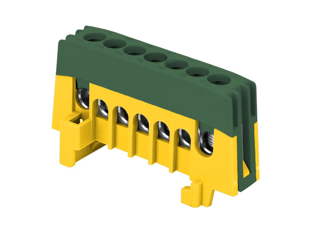 Szigetelt elosztó sín PE, 7 vezeték, zöld