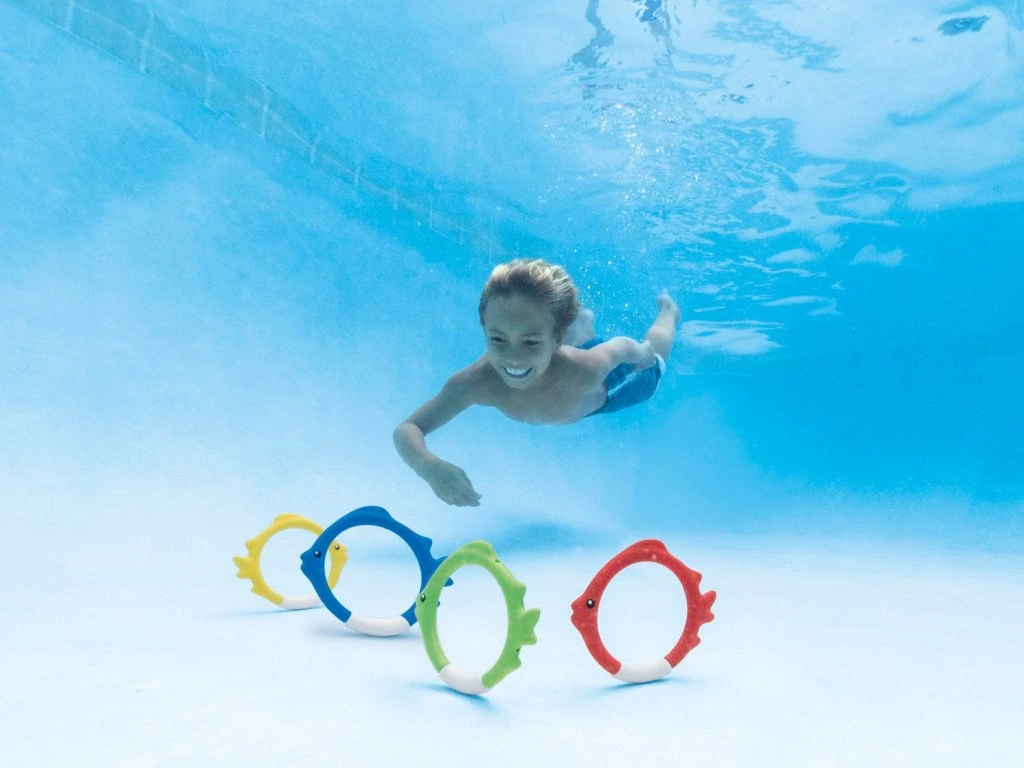 Színes halacskák merülés tanulásához medencében
