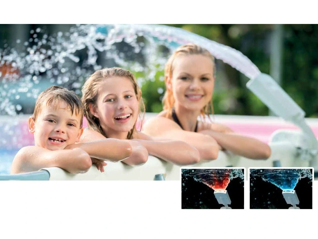 A magán medencében való fürdőzés olyan öröm, amelyet a saját kerted nyugalmában is megengedhetsz magadnak. Azonban az INTEX gondoskodott róla, hogy a fürdőzésed ne csak kellemes, hanem egyedi is legyen. Mindezt a vadonatúj, 2016-os kollekció LED vízpermetezőjének köszönhetően. Most lehetőséged van gazdagítani a medencés kikapcsolódást a vízesésen átívelő sokszínű sugarakkal. A beépített LED világításnak köszönhetően a permetező különleges vizuális élményt nyújt, amikor éppen használni szeretnéd a medencédet.