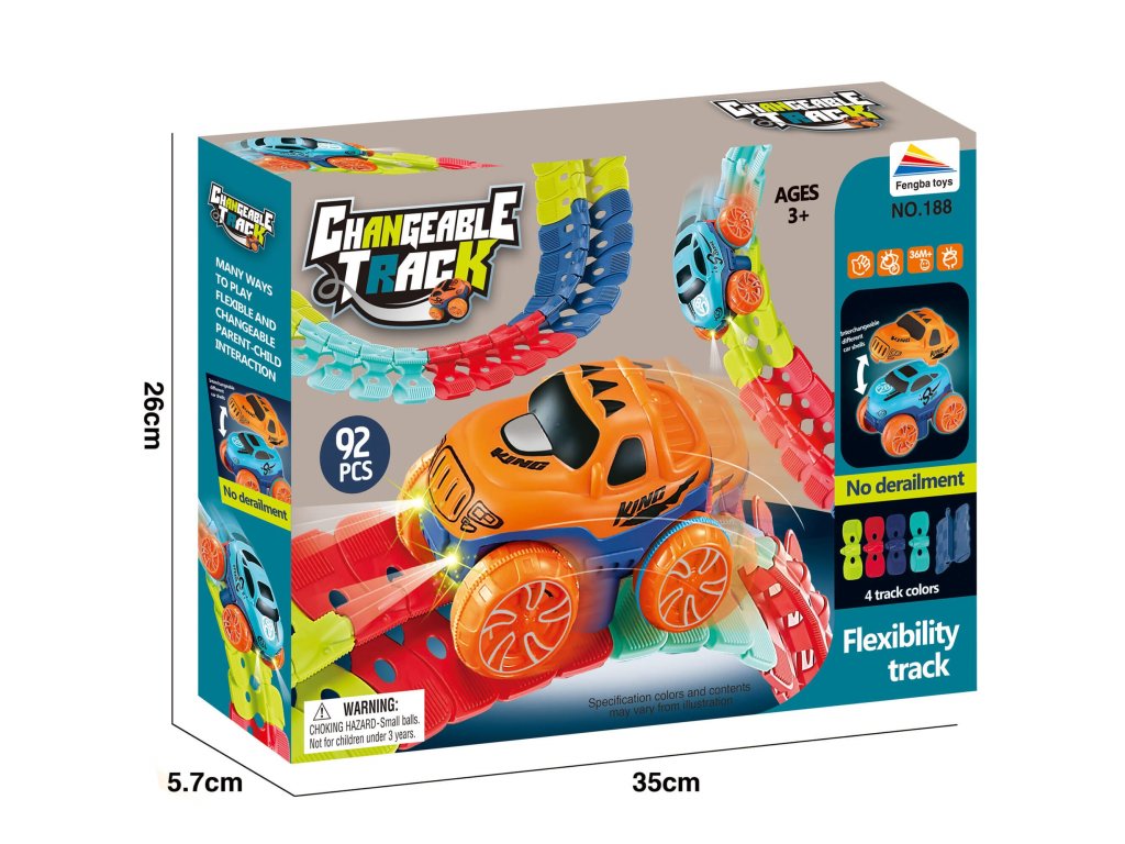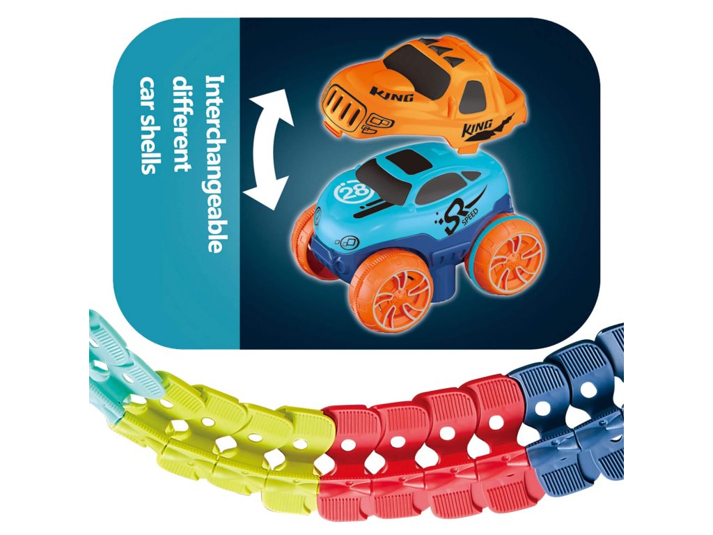 1x terepjáró alváz (magasság: 5 cm, szélesség: 8 cm, hosszúság: 10 cm), elemmel működik (az elem bemenetét a mellékelt csavarhúzóval lehet kicsavarni), 2 LED lámpával (elöl) felszerelve
