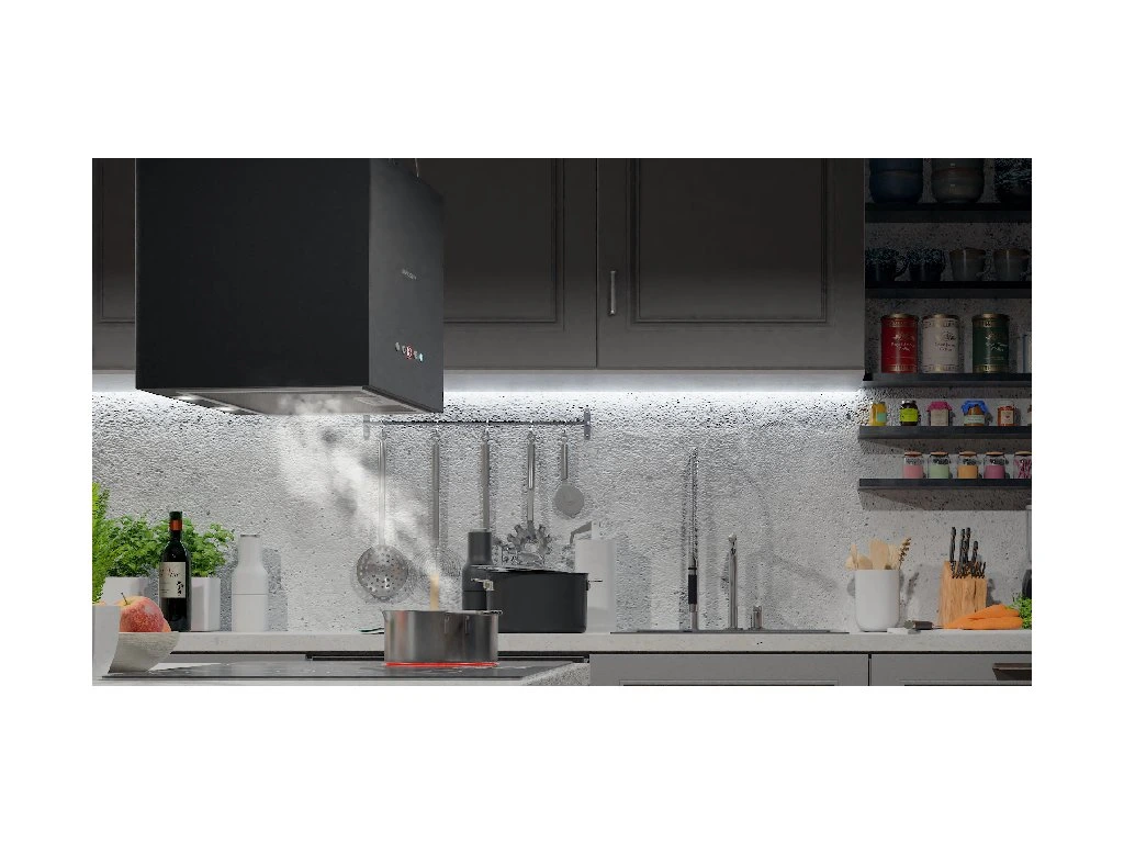 A páraelszívó rozsdamentes acél kivitelű és energiatakarékos LED világítással rendelkezik. A csomagban 2 darab faszénszűrő található.